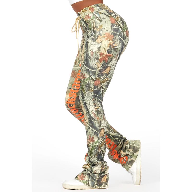 A trendy athleisure super stacked lounge pant for women in tree camo. Designed with ultra soft fabric for the perfect everyday pant.