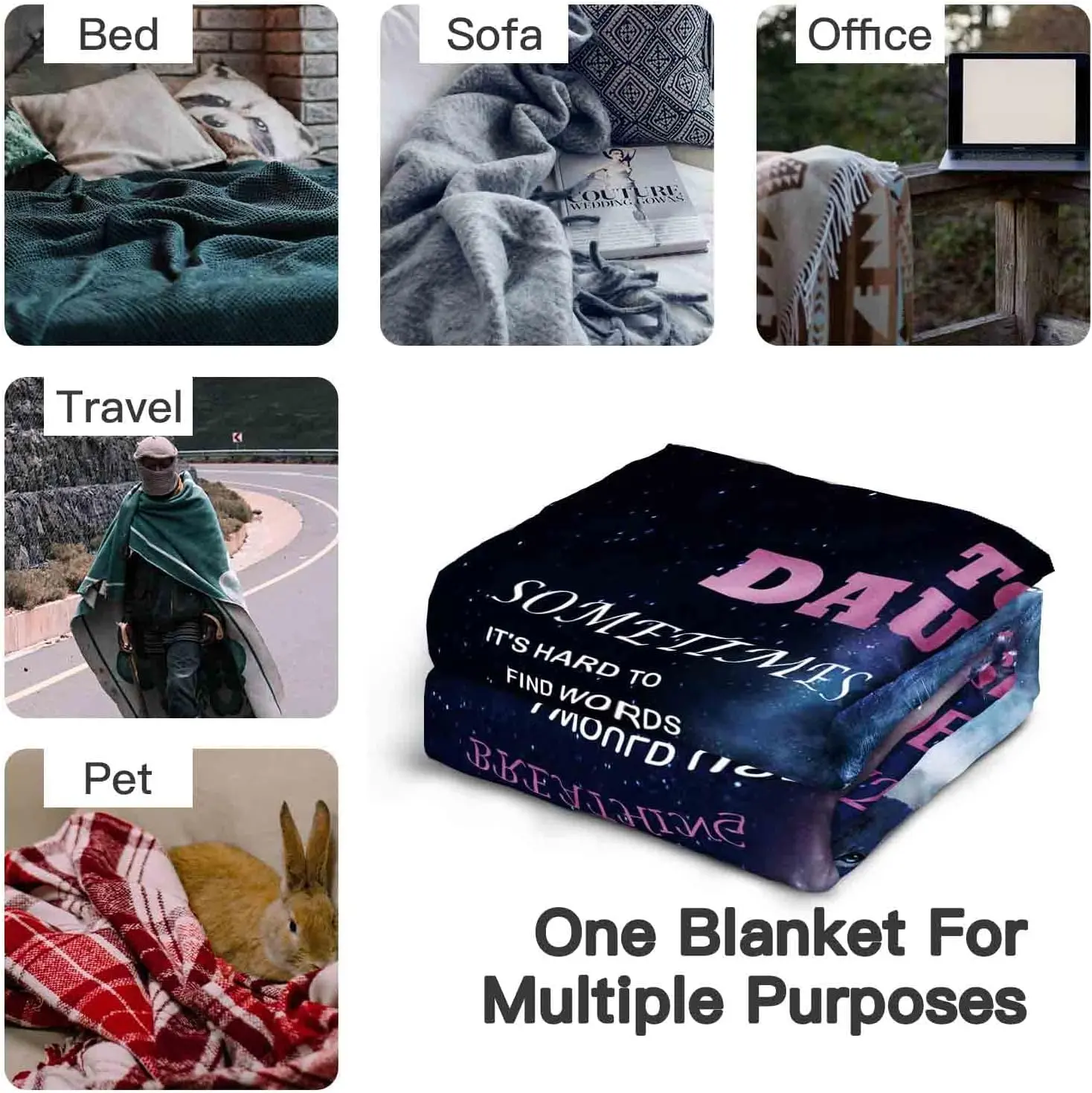 Applicable scence: Perfect to use when cold nights watching TV, reading a book on a couch, or office lunch break. It is also lightweight and easy to carry,suitable as an outdoor blanket, camping blanket and travel blanket.