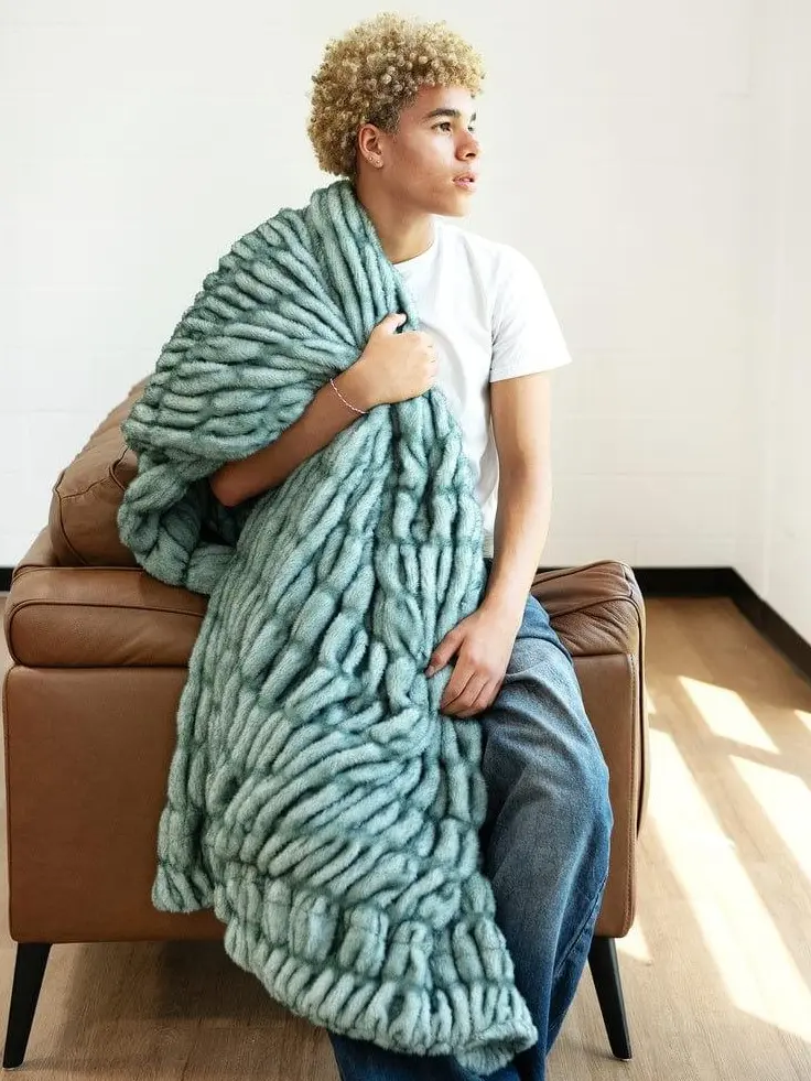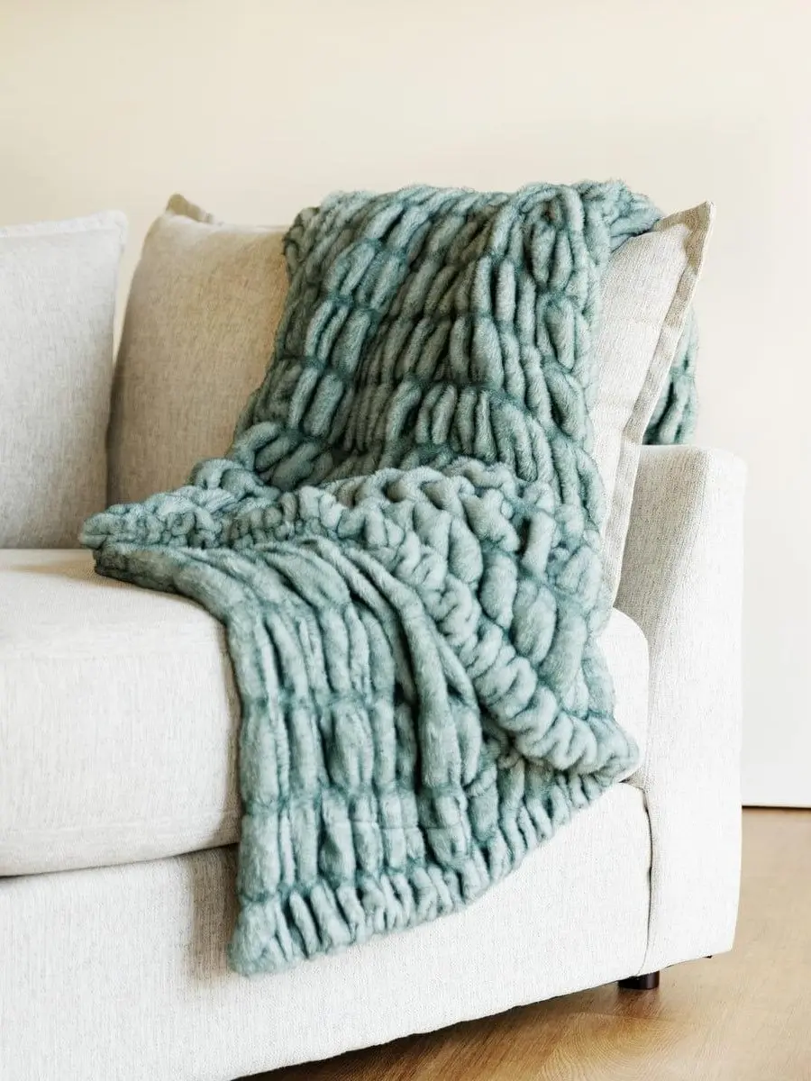 The Hugs blanket is a nice weight. I find it’s not too thick or heavy but still feels so soft and cozy. It’s the perfect blanket to keep on the couch to cuddle up with and relax after a long day or just anytime. The jade color is a pretty shade especially for those who like green colors but are looking for something a little different than the usual green. I’d recommend this color and style for both men and women.
