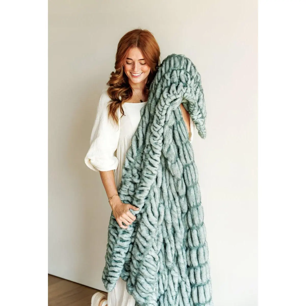 This blanket is the ultimate in comfort. I have the blue one, and got my daughter the green because it was the family favorite. Now she loves to sleep with her own “fluffy cloud”. The color is beautiful, even softer and prettier than I expected, and the weight is perfect.