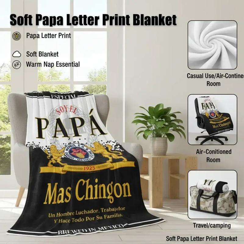 Papa Letter Print Soft Blanket, 1 Count Casual Soft Throw Blanket, Soft Comfy Blanket, Air-conditioned Room Blanket, Warm Nap Blanket for Home Office Travel Camping