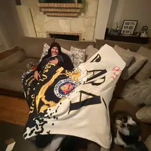 Bought for my dad though I steal it while passing out with this blanket so many times. It’s pretty soft though it is a bit thin. However I think it’s still pretty good !!