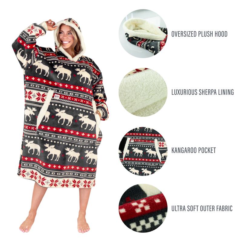 OVERSIZED SWEATERSHIRTS: Can't decide between a hoodie or a blanket? Why not wear both? This comfortable hooded sweatshirt gives you warmth and length for wearing around the house without taking away any mobility.