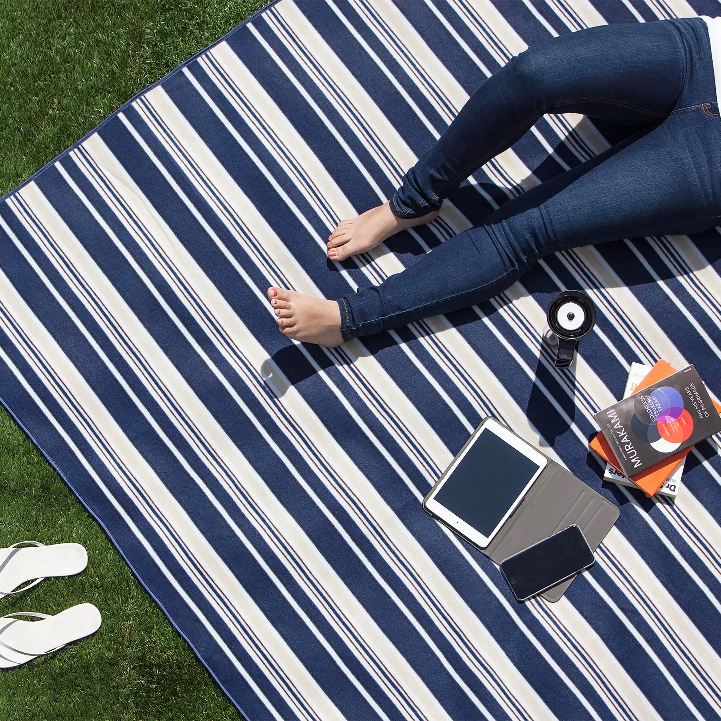 The Blanket Tote XL Outdoor Picnic Blanket is an extra-large portable camping blanket with soft fleece topside and water-resistant underside that packs into a compact carry tote with shoulder strap and zippered security pocket. With 38 square feet of softness, this beach blanket seats the whole family and then some and can even double as a poncho in a pop-up rainstorm or a handy travel blanket on flights.