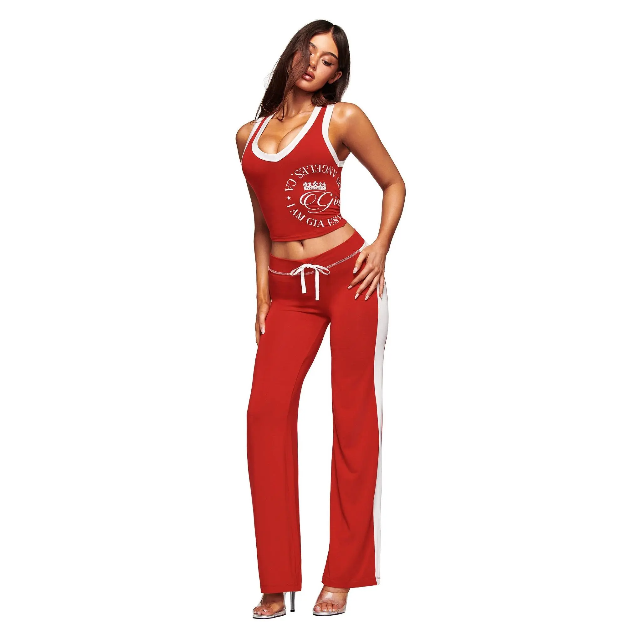 ·Contrast white waistband and stripe binding detailing