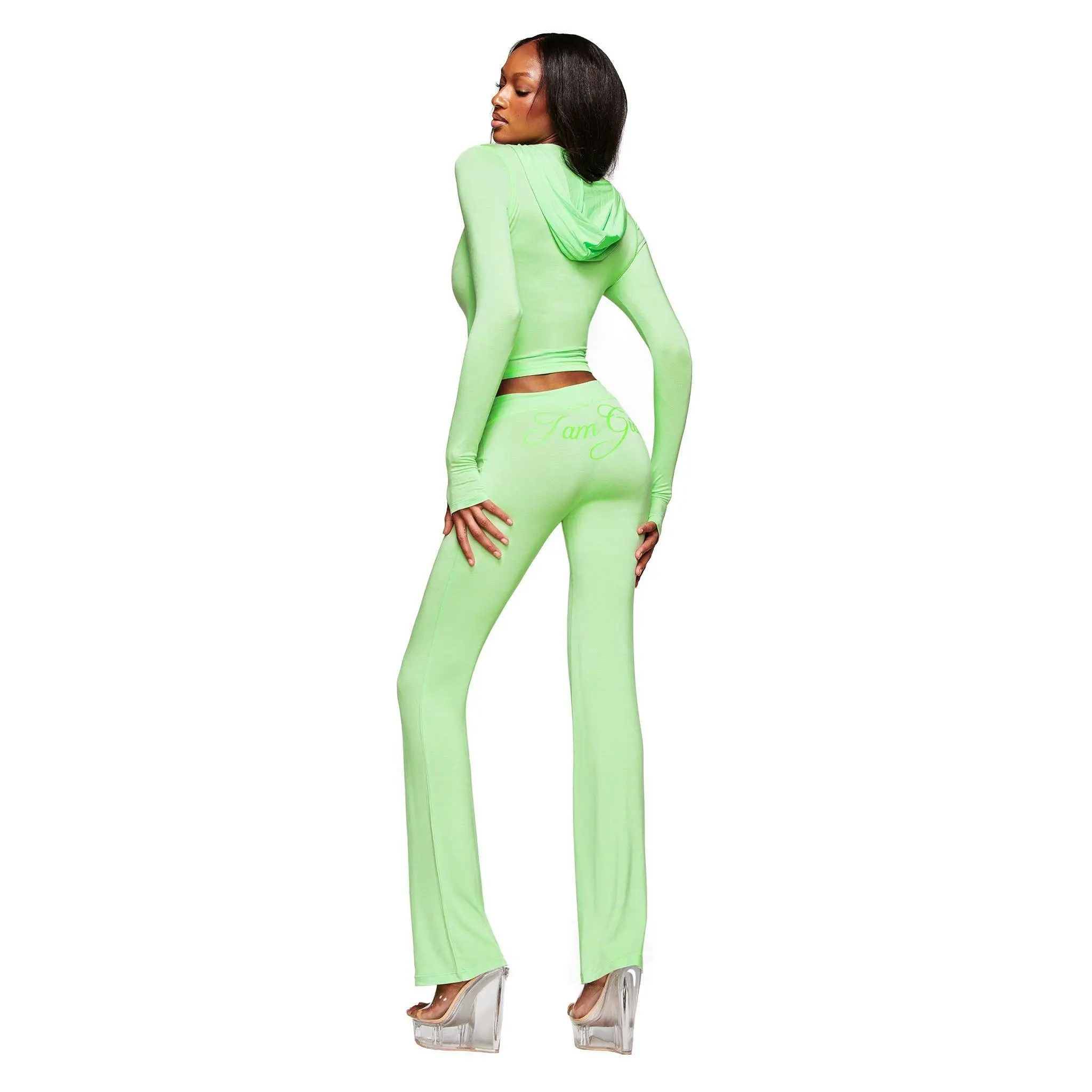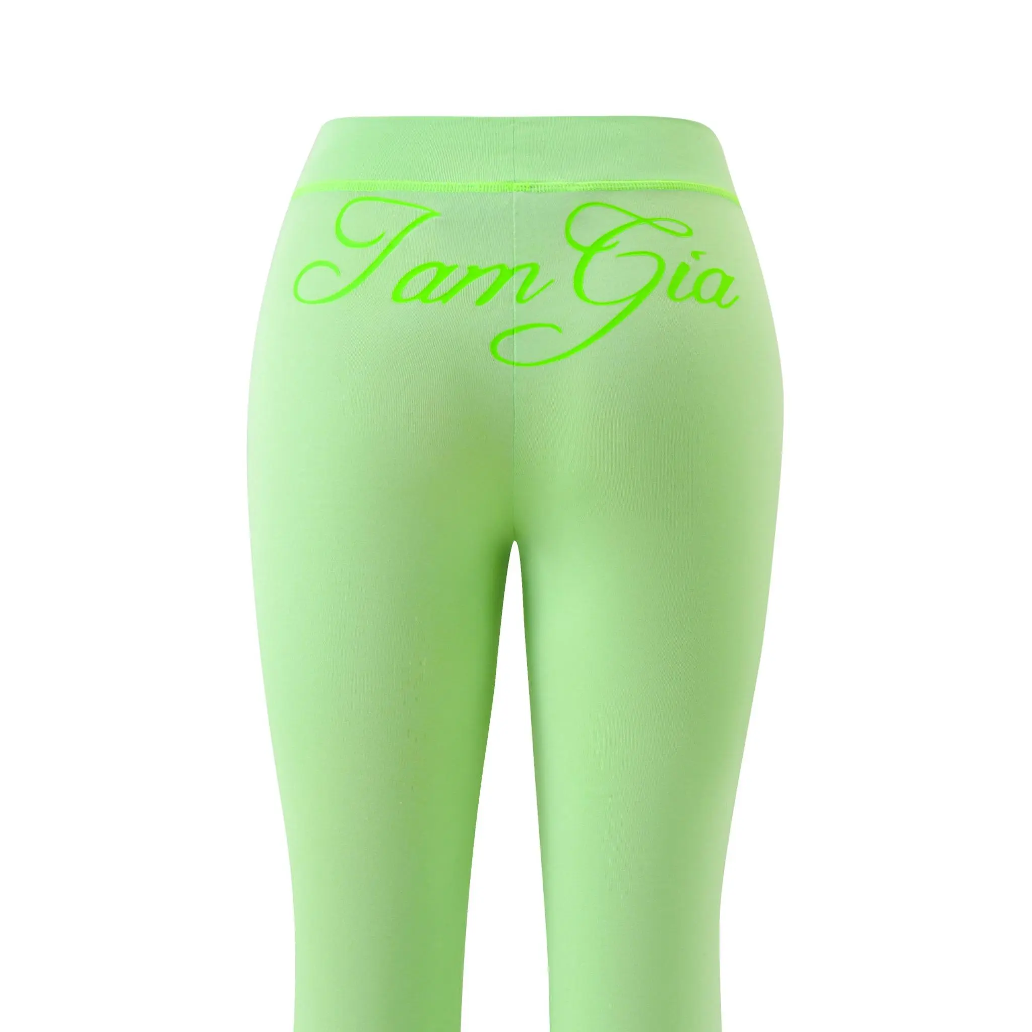 ·Contrast neon green IAMGIA logo across the backside using plastisol printing technique