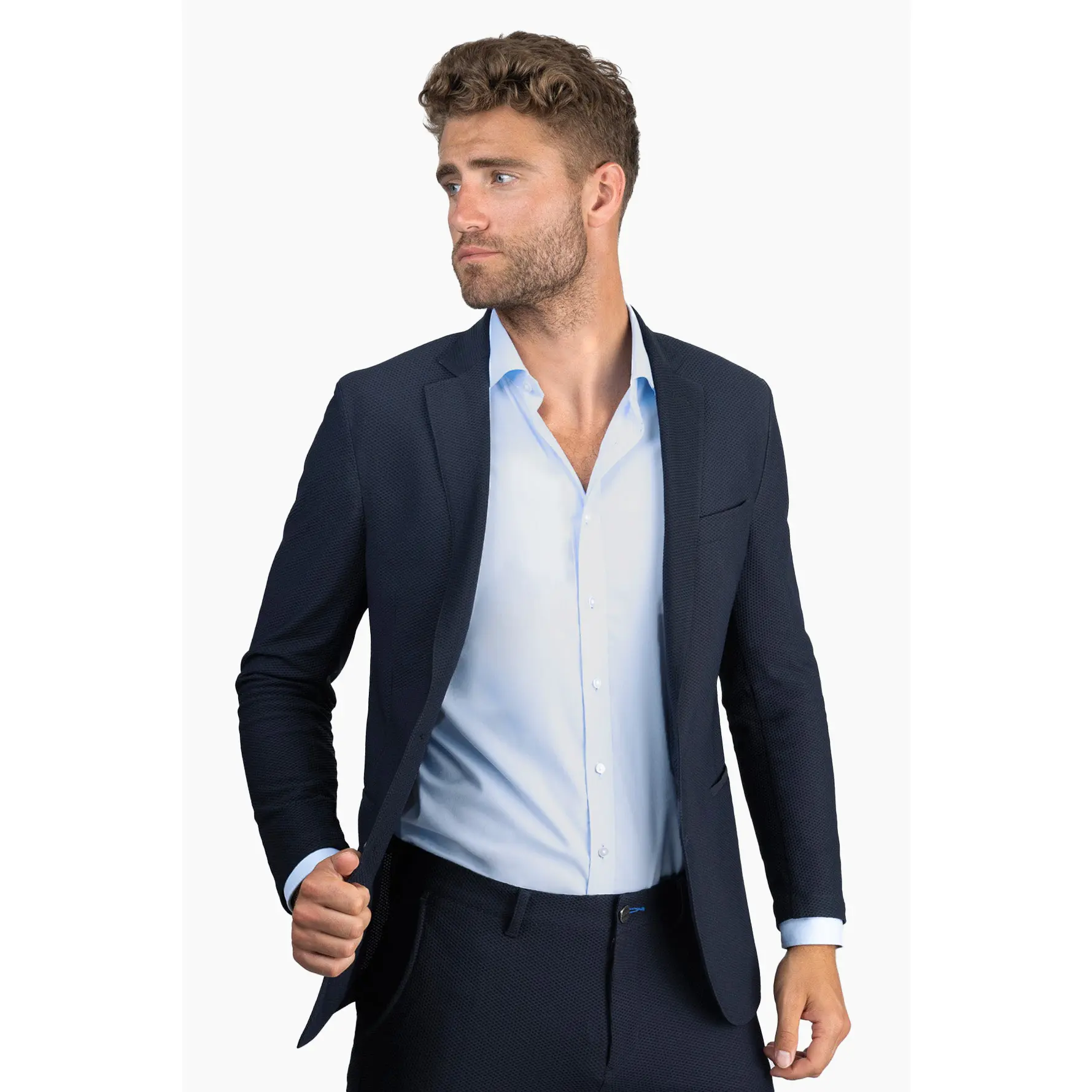 The breathable air suit functions like all Twillory suits and blazers: extreme stretch and comfort, airy, no wrinkles, plenty of pockets, and is machine washable. Don't be that dressed-up, overheated dude with an overused, sweaty tissue in your pocket.