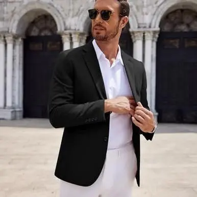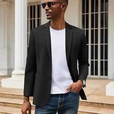 ·More Occasion --- Mens casual slim fit suit jacket is suitable for business, wedding, dating, meeting, event, office work, ceremony, daily wear, concerts, etc. This mens stretch wrinkle resistant blazer would make an ideal gift for yourself, your husband, son, friend or anyone else.