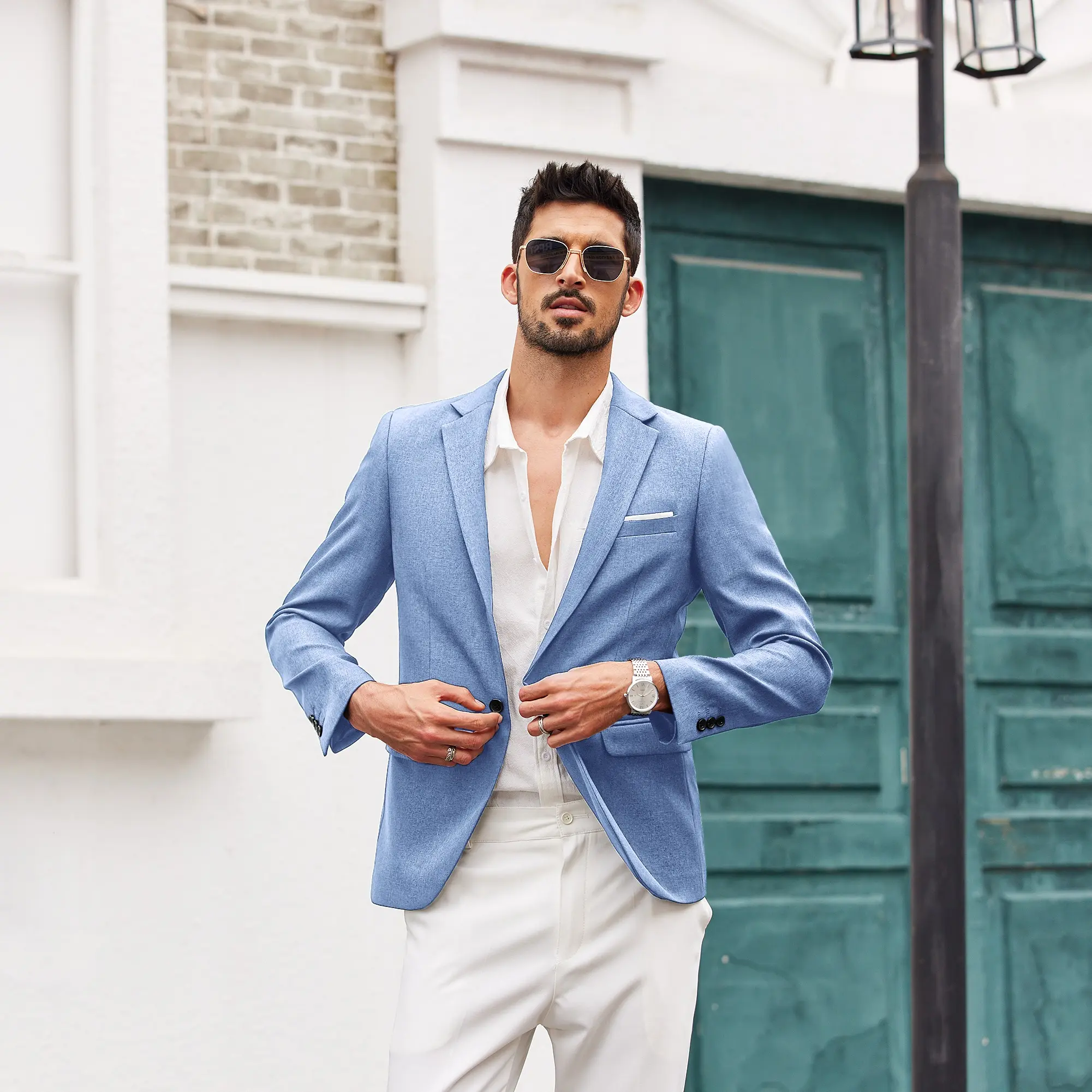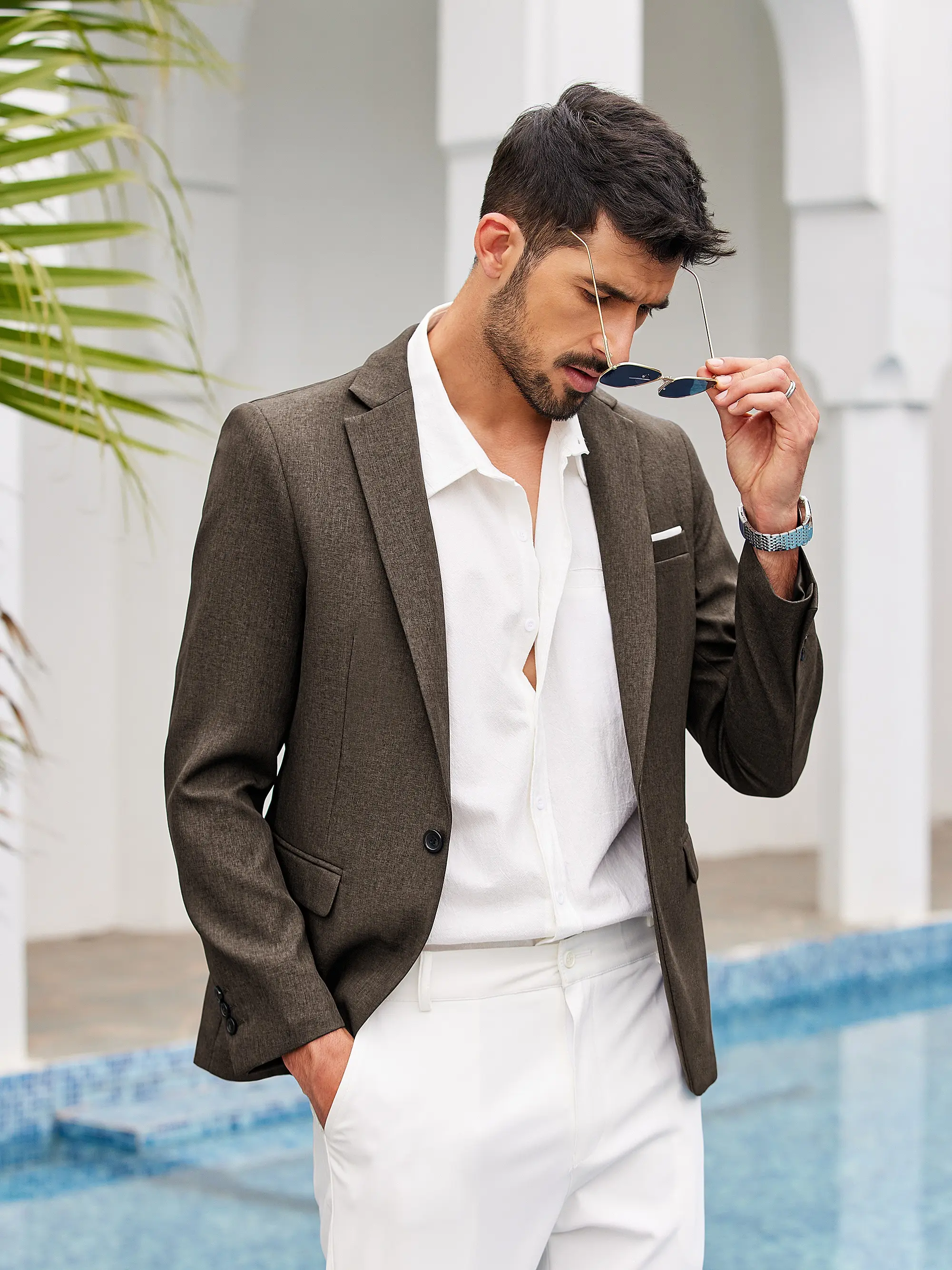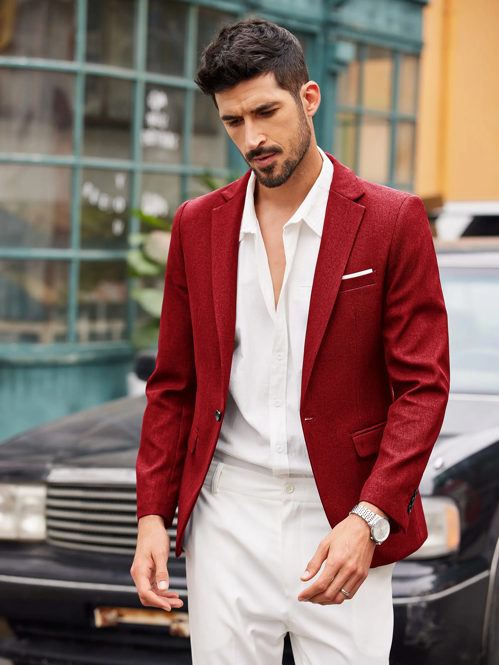 ·Fabric typeHIGH QUALITY FABRIC - This blazer for men is made from 100% Polyester. Linen texture create a stylish and comfortable look.