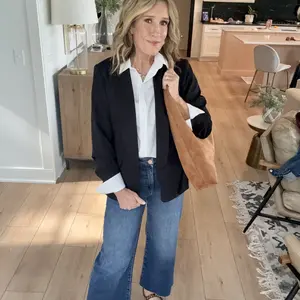 This is a great value. The blazer fits well and looks great with jeans. This blazer goes from casual to the office easily. The cut is very flattering also