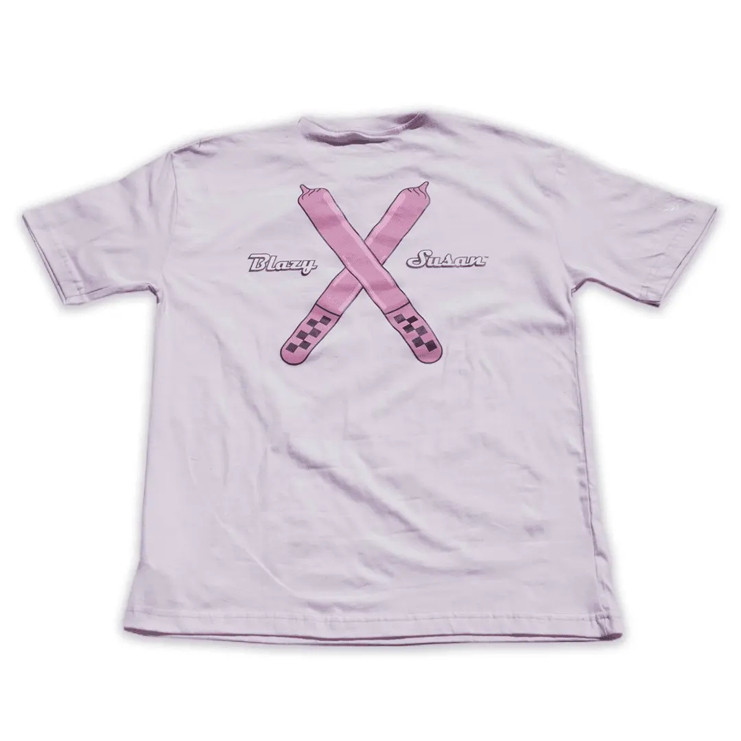 The Blazy Susan x Antifashion Pink JS T-Shirt combines Blazy’s signature color with Antifashion’s bold streetwear energy. Made from 100% heavyweight cotton, this limited-edition unisex tee offers a relaxed fit, premium feel, and collectible design.