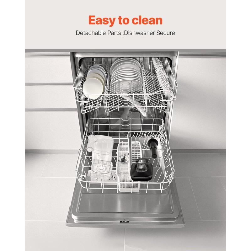 ·Easy to Clean: Cleaning is hassle-free—simply add a few drops of detergent and warm water, and the blender self-cleans in just 30 to 60 seconds. The detachable jar and tamper are also dishwasher-secure for added convenience.
