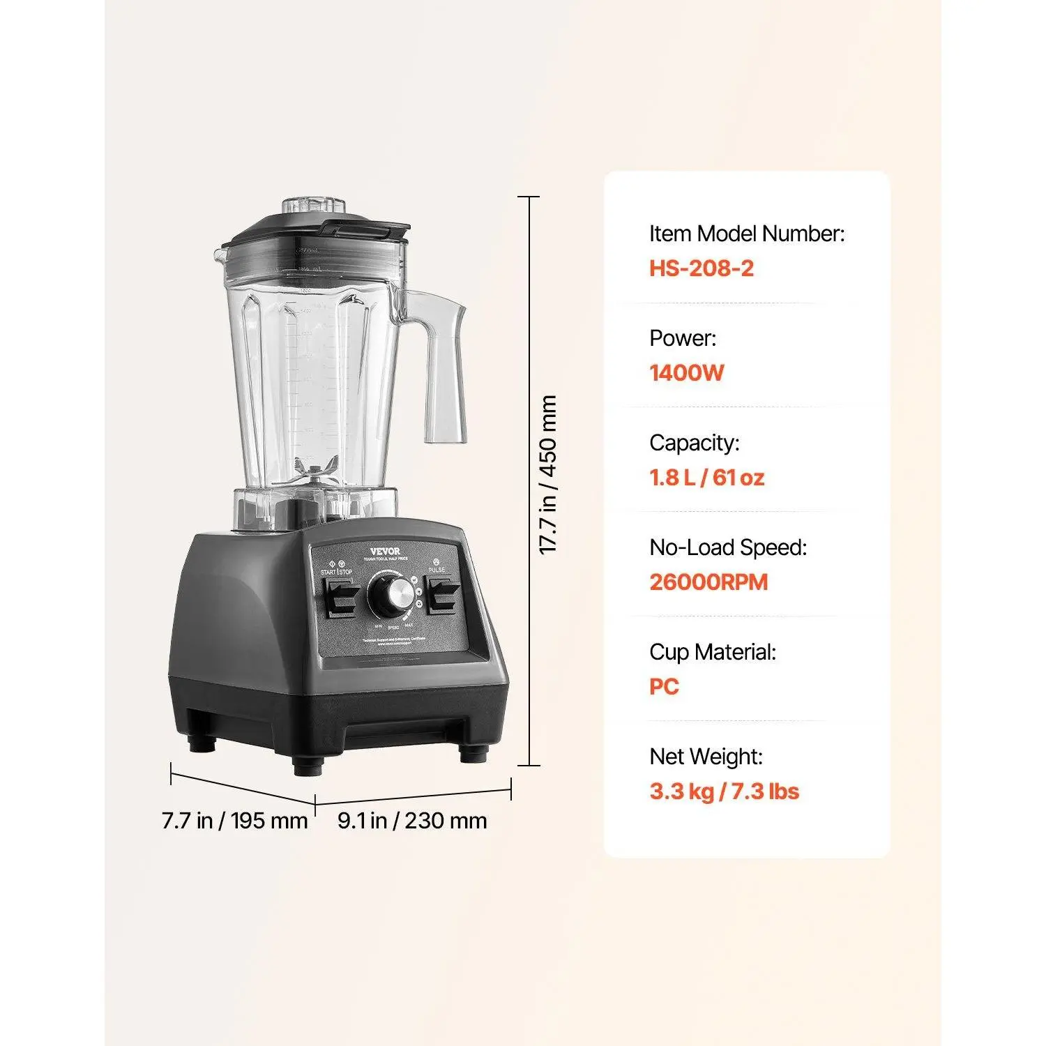 ·1.8 L / 61 oz Large Capacity: The BPA-free 1.8 L / 61 oz blending jar allows you to make up to four 13 oz cups or seven 8 oz cups of drinks per batch. The food-grade material ensures secure use. No more worry about food security!