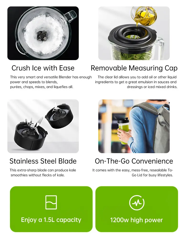 With a large 1.5L capacity, this blender is ideal for preparing cold drinks, fruit purees, milkshakes, and juices. The versatile combo is suitable for various recipes, making it a versatile addition to your kitchen.