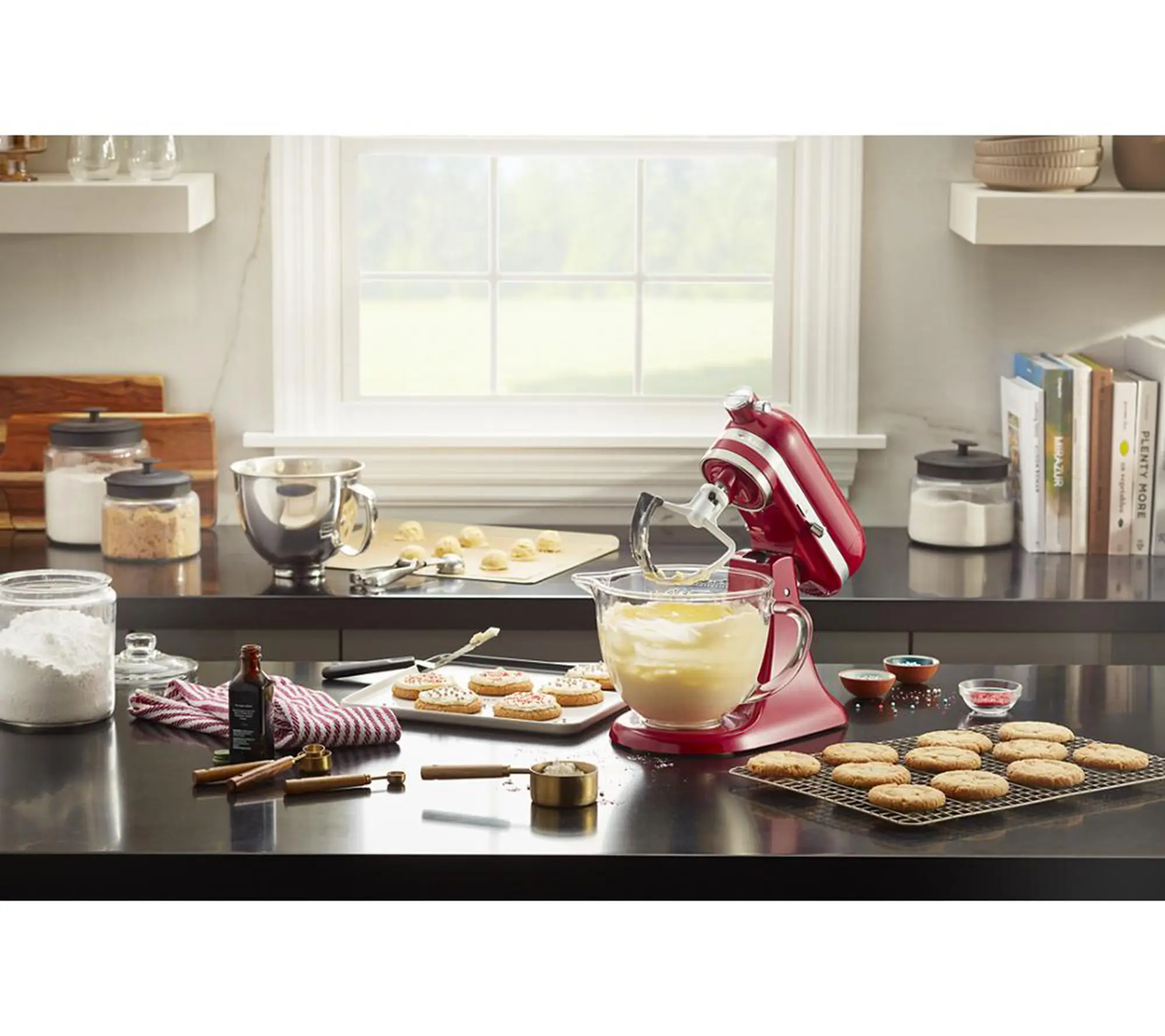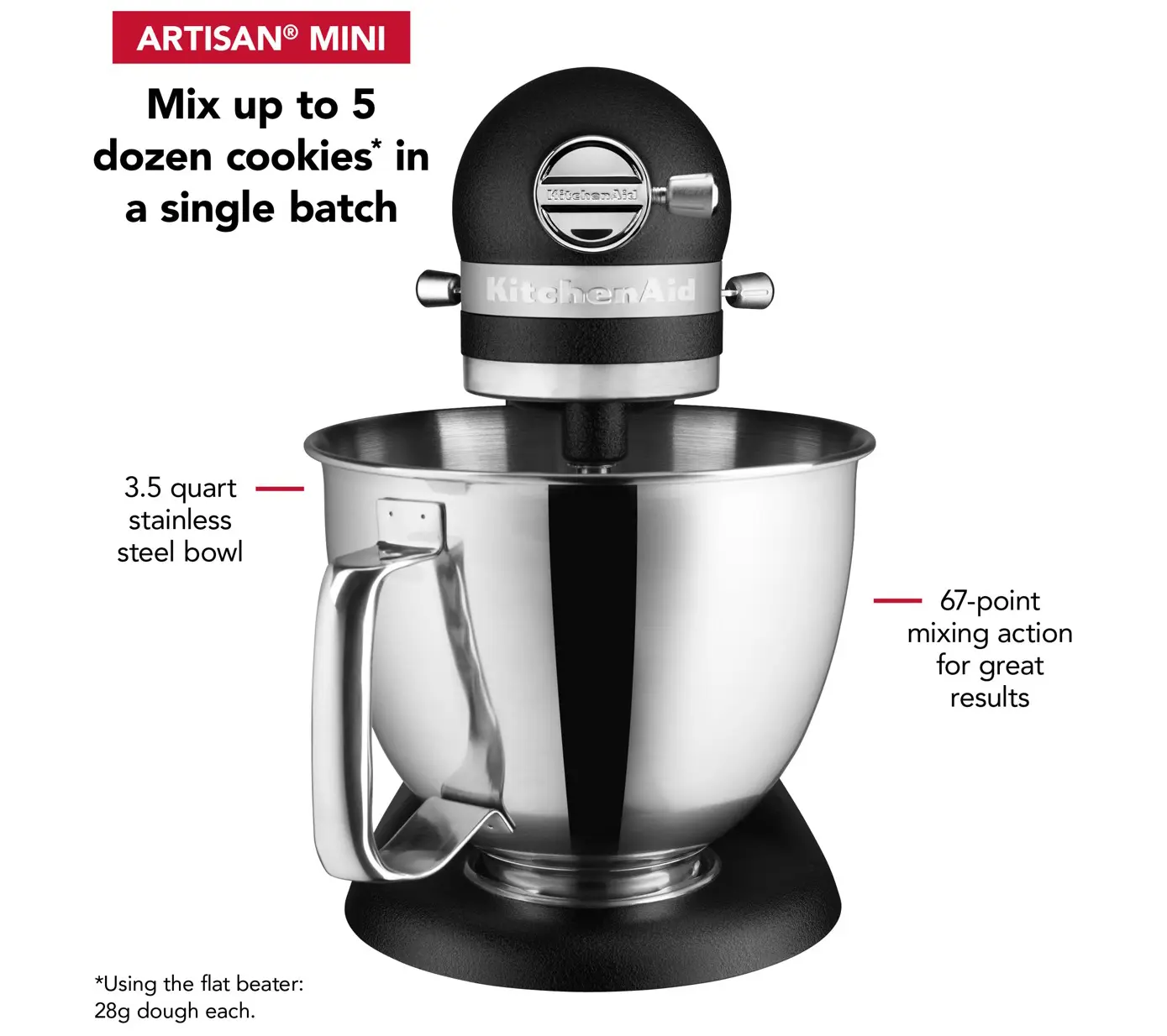 ·Makes up to five dozen cookies in a single batch, with the same power as the full-size KitchenAid tilt-head stand mixer