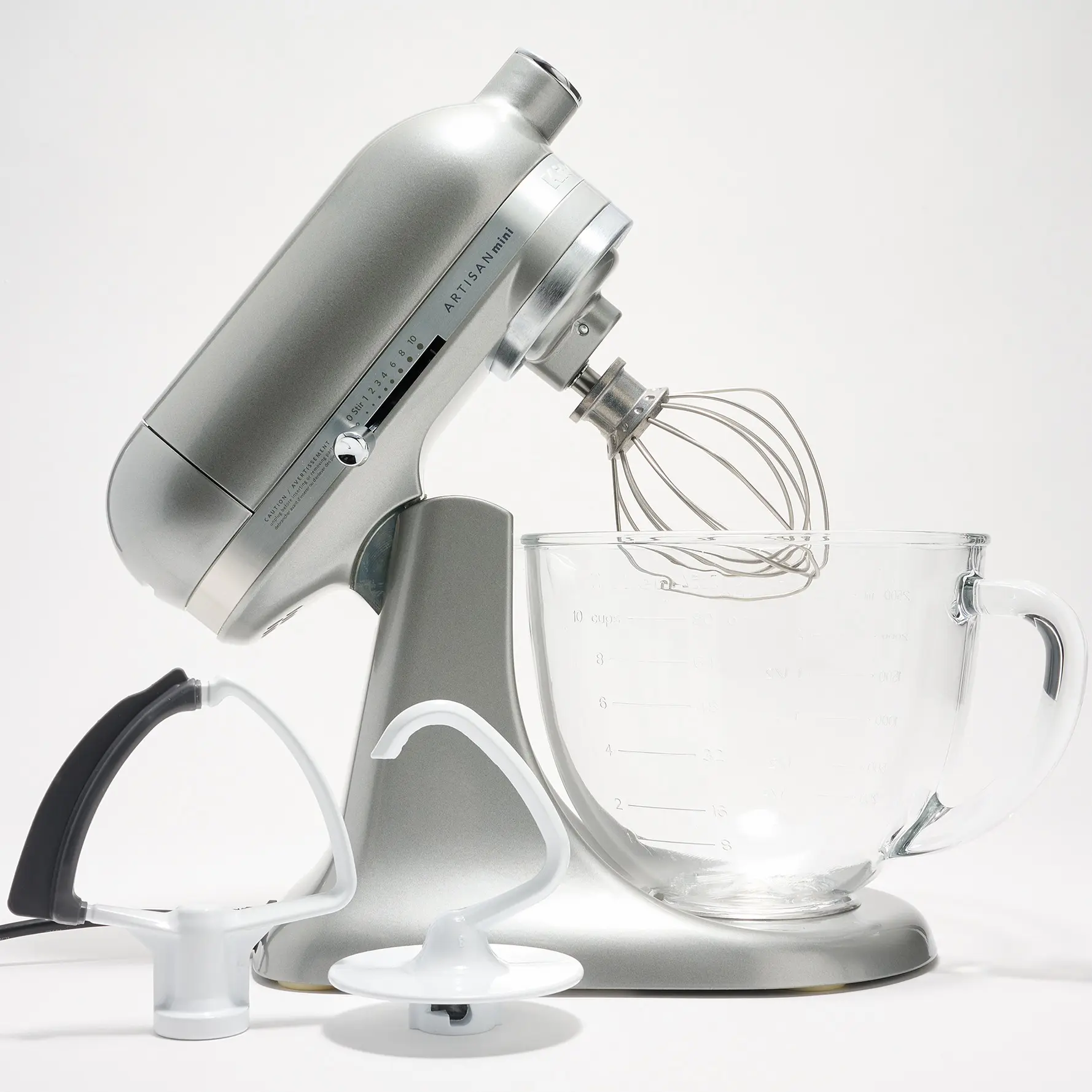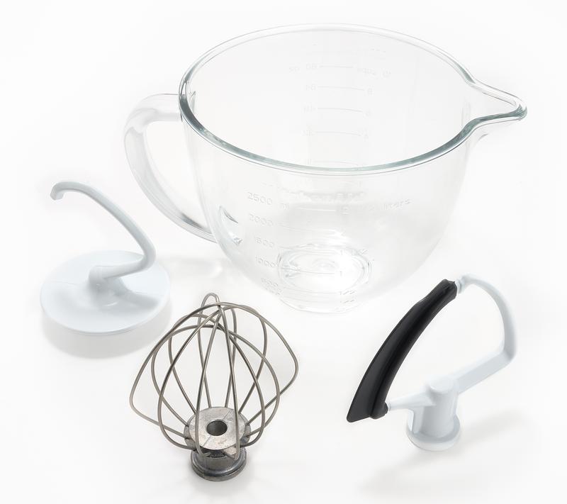 ·Includes Artisan mini tilt stand mixer, 3.5-qt glass bowl with handle and measurement markers, coated dough hook, burnished wire whip, and flex edge beater