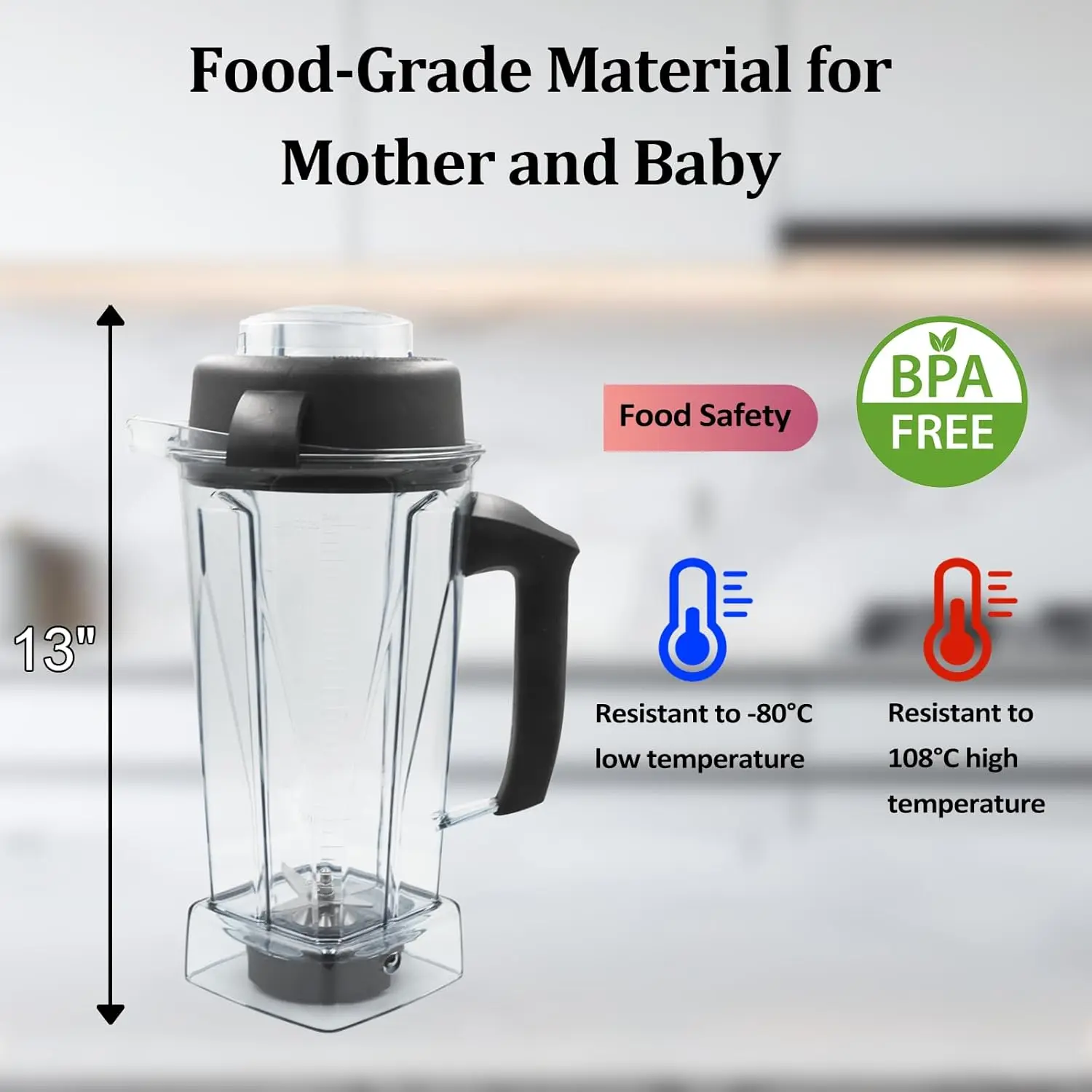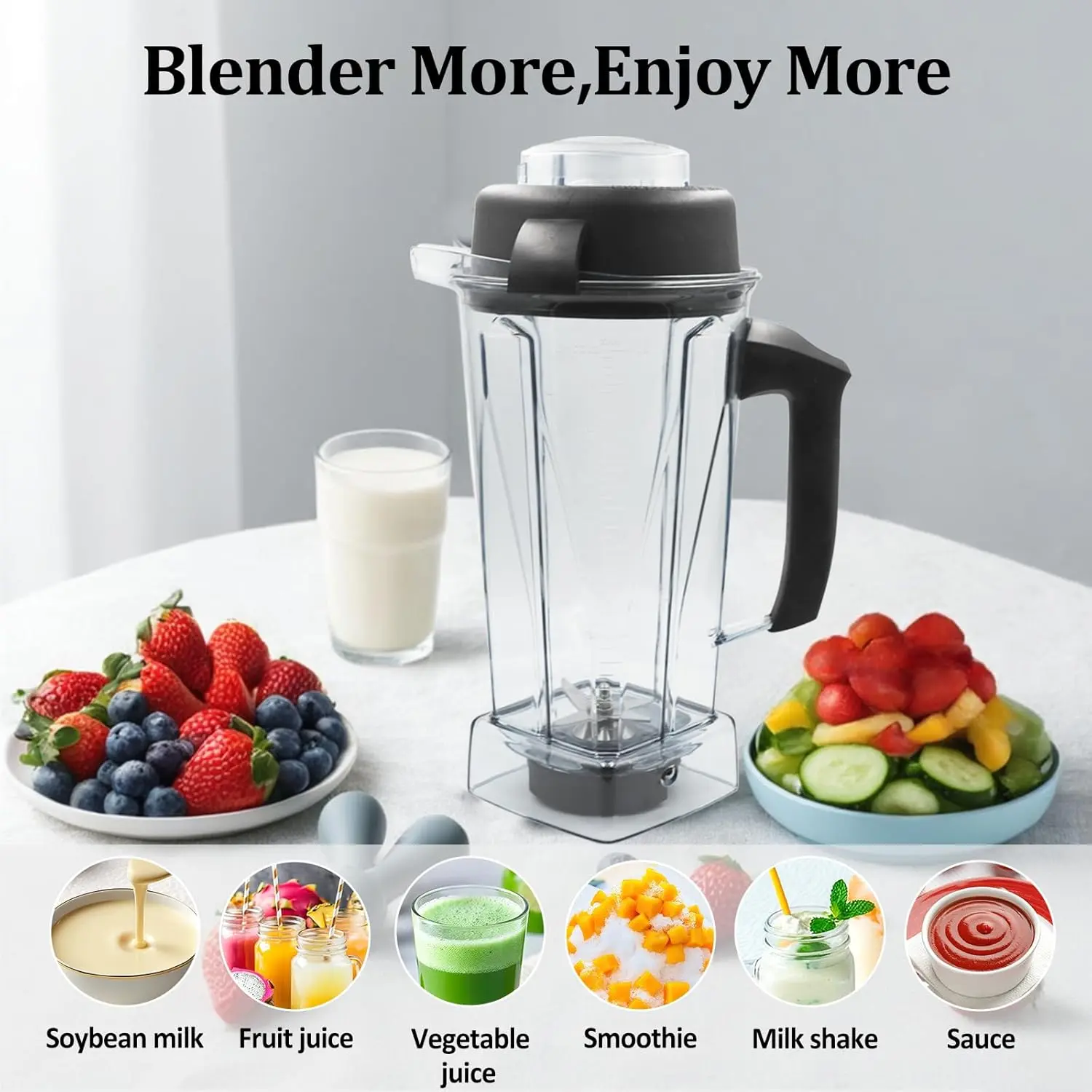 Safe Materials: Our 64oz blender pitcher/container are made of the safest material, which will not secrete any harmful substances even under high temperature. The cup is very sturdy, -resistant, aging-resistant and has a long service life,It is also the companion for your blender