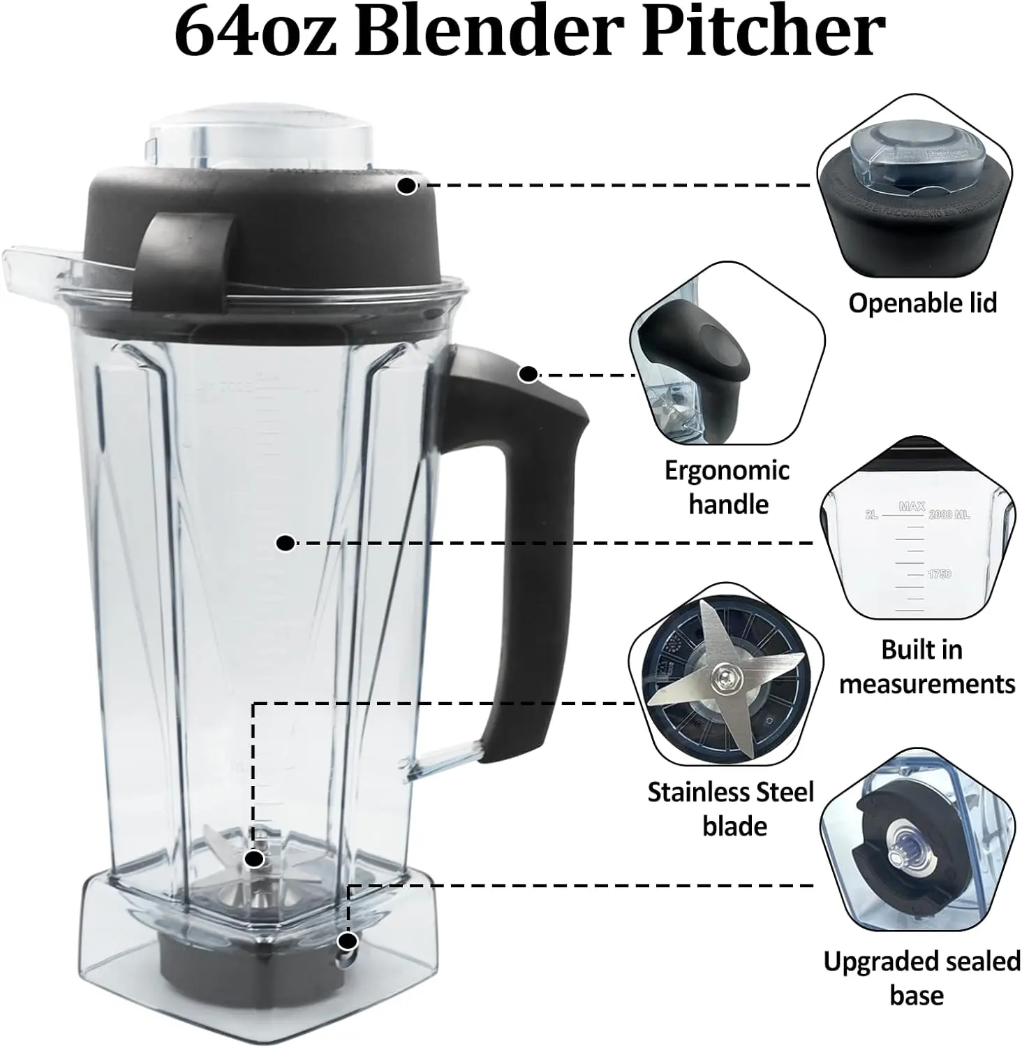 Easy to Clean: Not suitable for use in a dishwasher. After using the 64oz container, you can just add a bit of water and a drop of dish soap to the pitcher and blend for 30 seconds for easy cleaning.