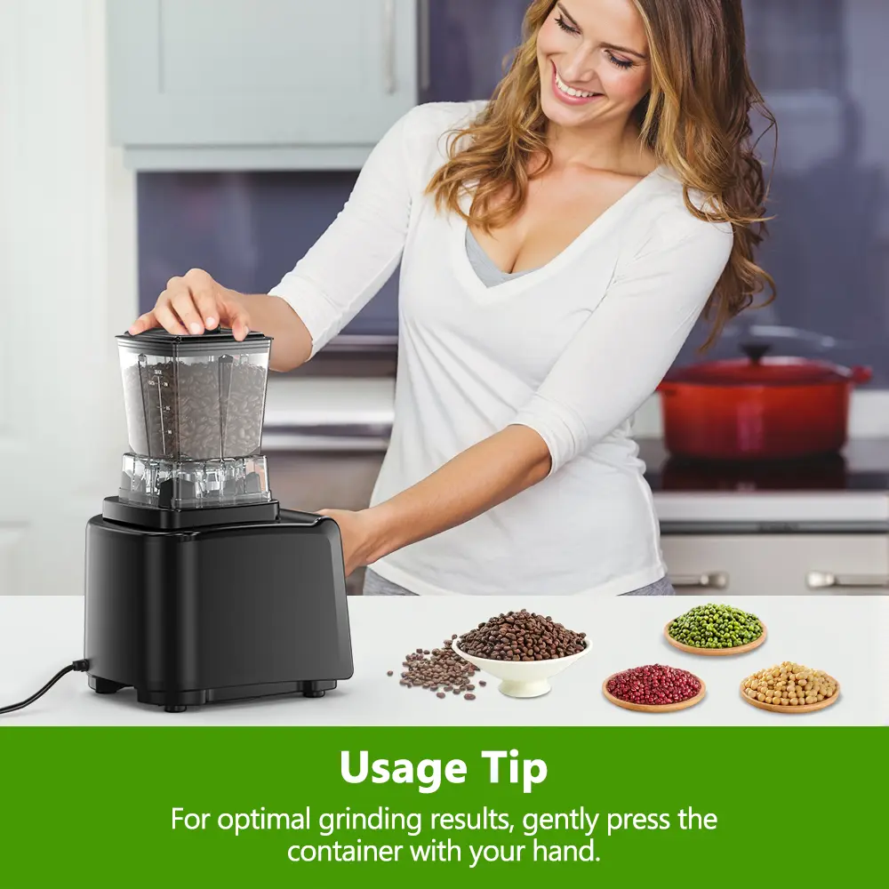 🔒 Safety Tips: For optimal grinding results, gently press the container with your hand.