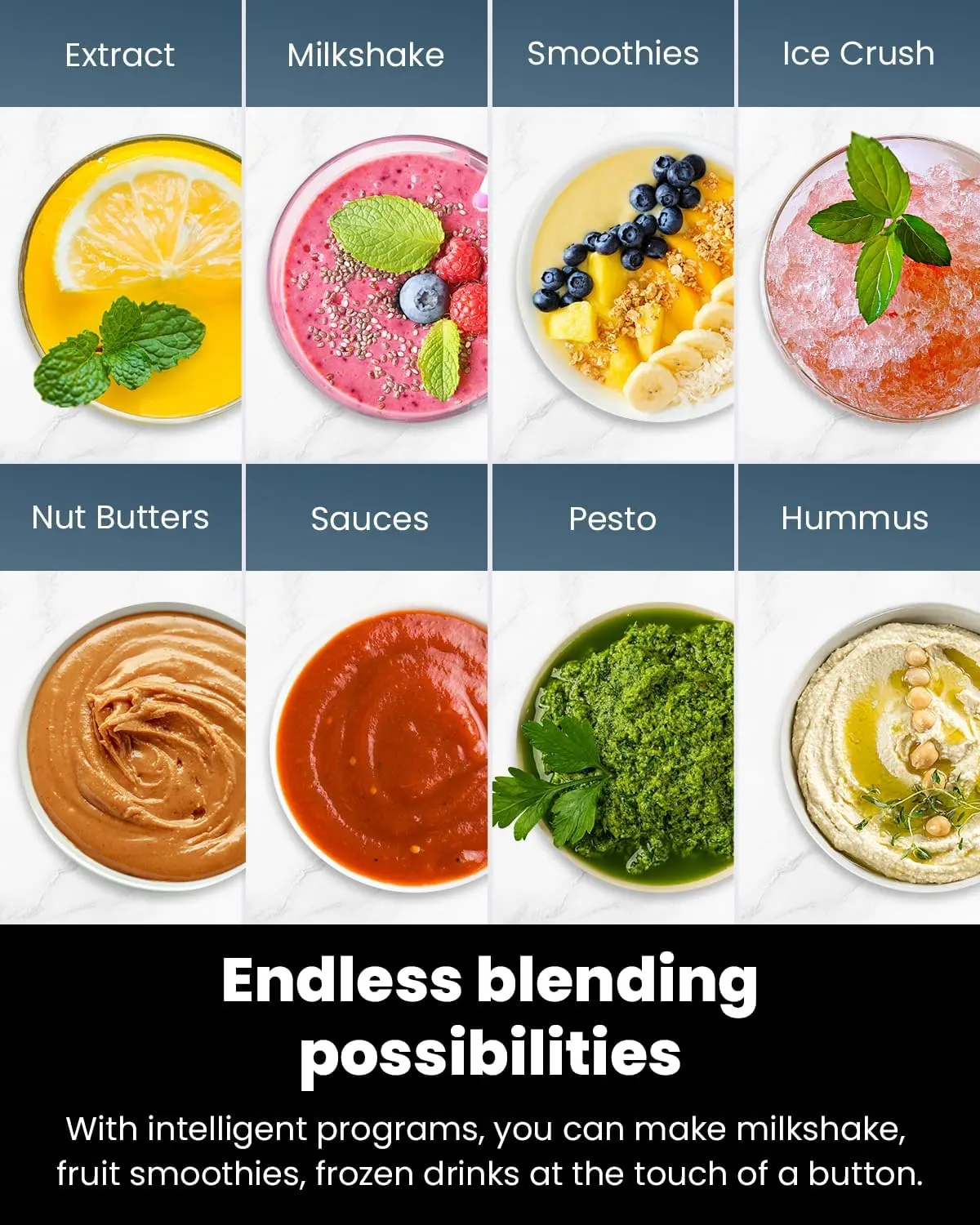 ·4 Intelligent Programs blenders offer five smart programs: Extract, Milkshake, Smoothie, Ice Crush, and Pulse. These programs, combined with unique pulse settings, help create delicious drinks. The blend-and-pause modes enhance your beverage experience. Perfect for smoothies, ice, and frozen fruit.