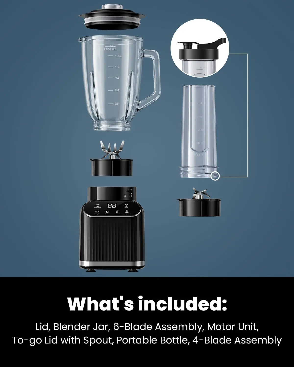 [POWERFUL BLENDING PERFORMANCE]: With 1200 watts of peak blending power and stainless steel blades, this smoothie blender gives you all the power you need to make smoothies, protein shakes, frozen drinks and more.