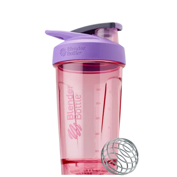 The BlenderBottle Strada push-button protein shaker provides sleek style and ultimate ease. The bottle’s a spill-proof locking lid opens and closes with the touch of a button. A flexible, ergonomic carry loop provides a comfortable hold. The patented mixing system utilizes the BlenderBall wire whisk to mix even the most stubborn protein powder, and a rounded base ensures a smooth blend. Made from durable, stain- and odor-resistant Eastman Tritan plastic, the BlenderBottle Strada is simplicity at its best. Leakproof; top-rack dishwasher safe; BPA and phthalate-free. Manufacturer’s limited lifetime warranty. Now available with BlenderBall Color, our new durable mixing system, featuring the same capabilities you love from our traditional wire whisk. Now available in nine vibrant colors, adding an extra touch of personality to your Strada shaker.