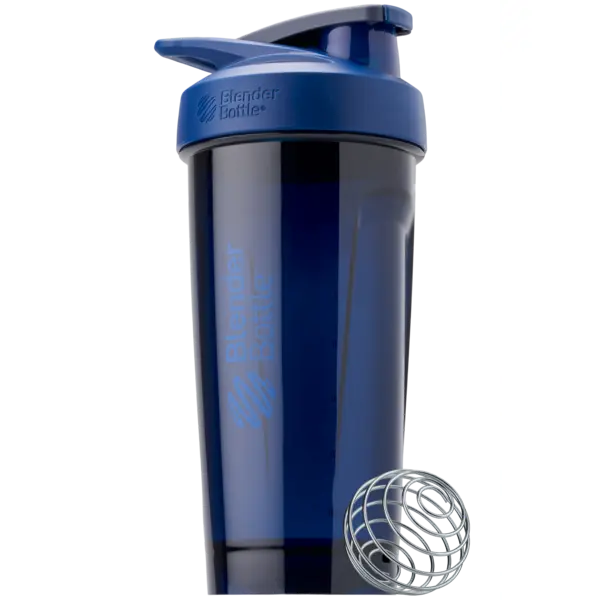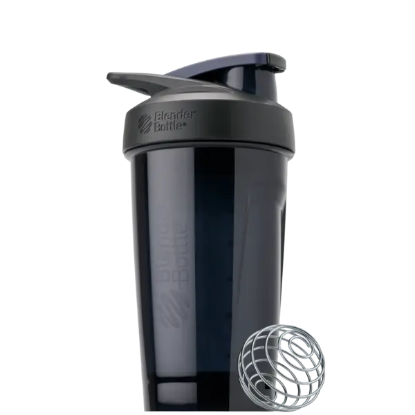 The bottle’s patented mixing system utilizes the BlenderBall wire whisk to mix even the most stubborn protein powder. A rounded base ensures a smooth blend.
