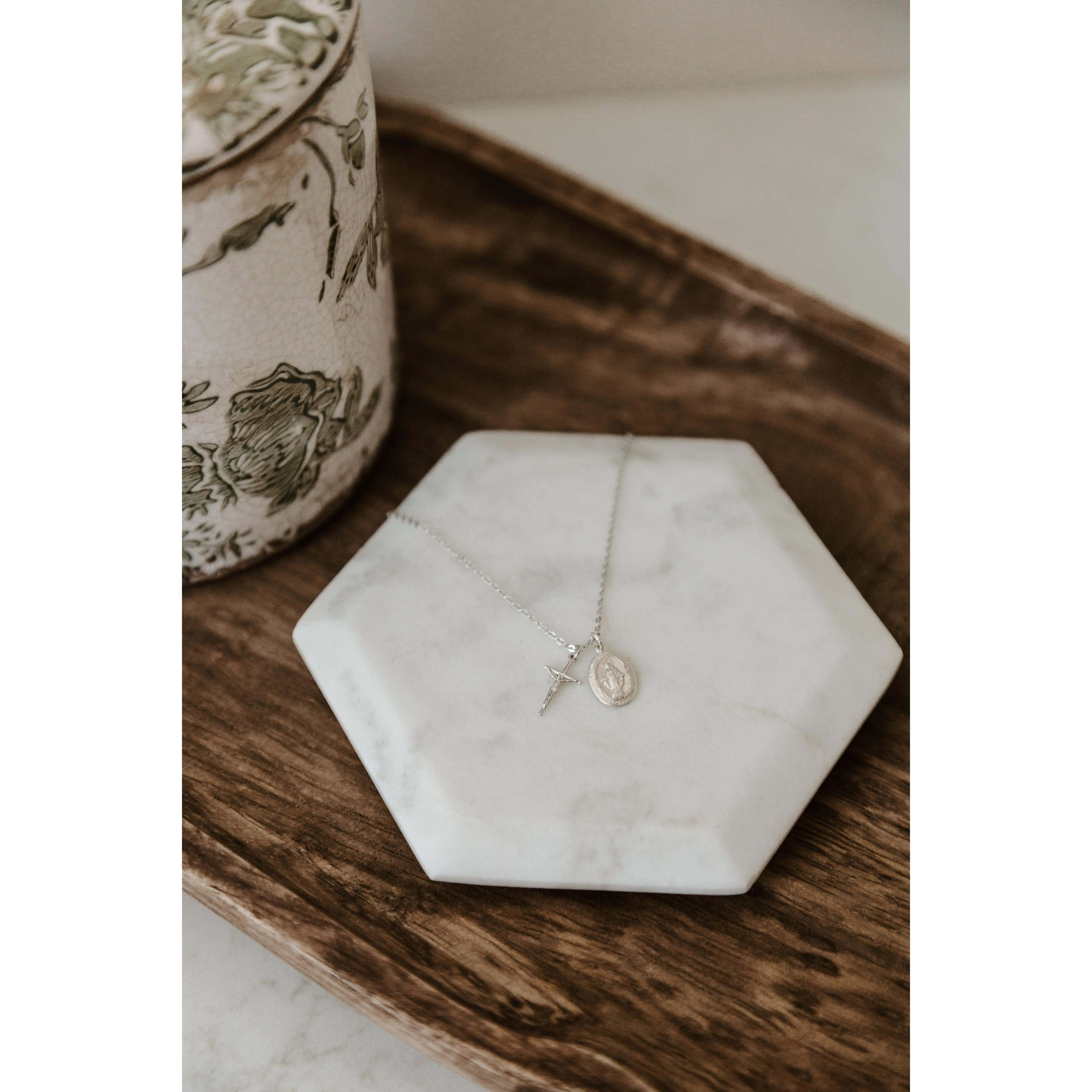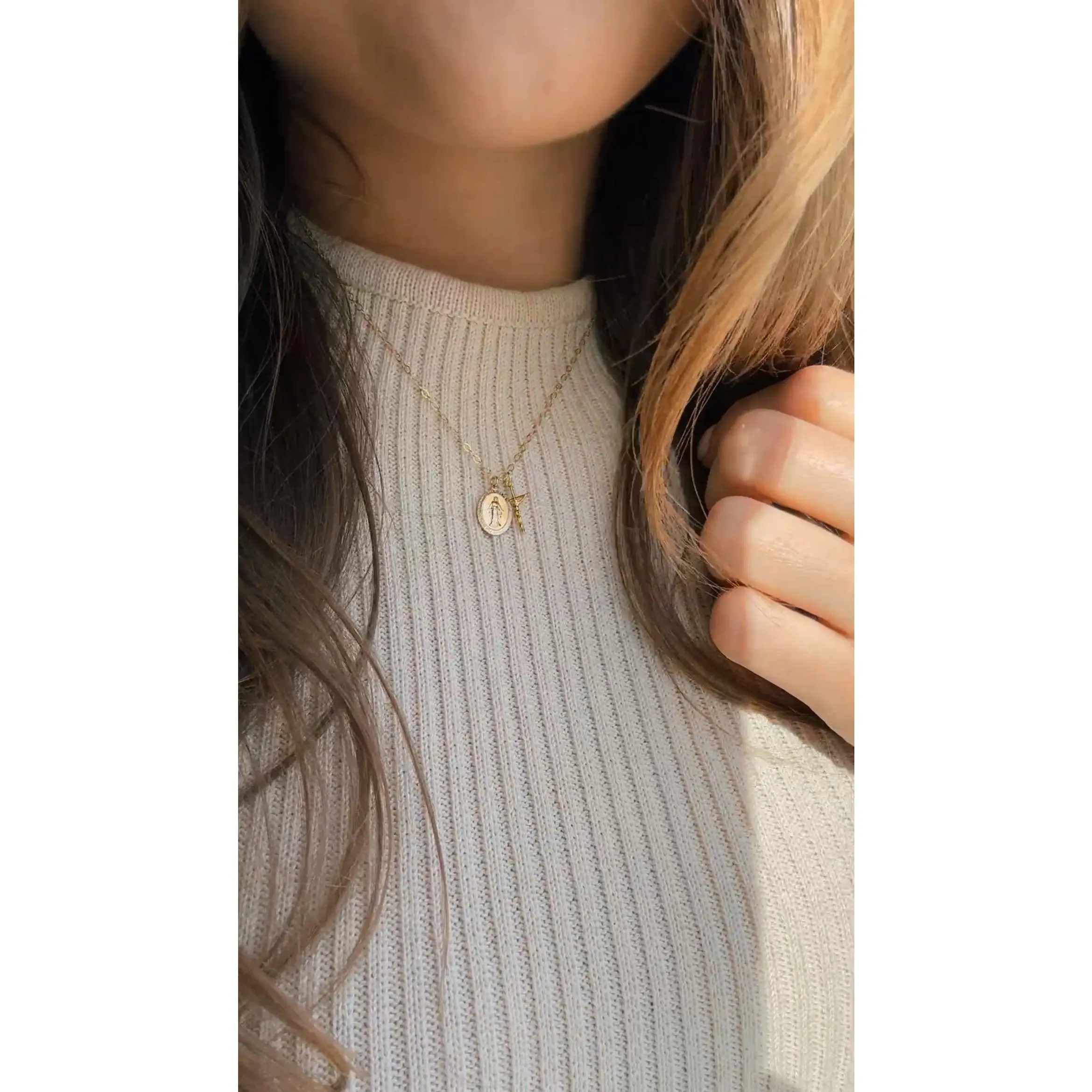 Perfectly dainty and will be an every day wear for me! I just had it blessed this weekend and having Mother Mary and the crucifix next to my heart will get me through every storm the week brings. Thank you!!!!