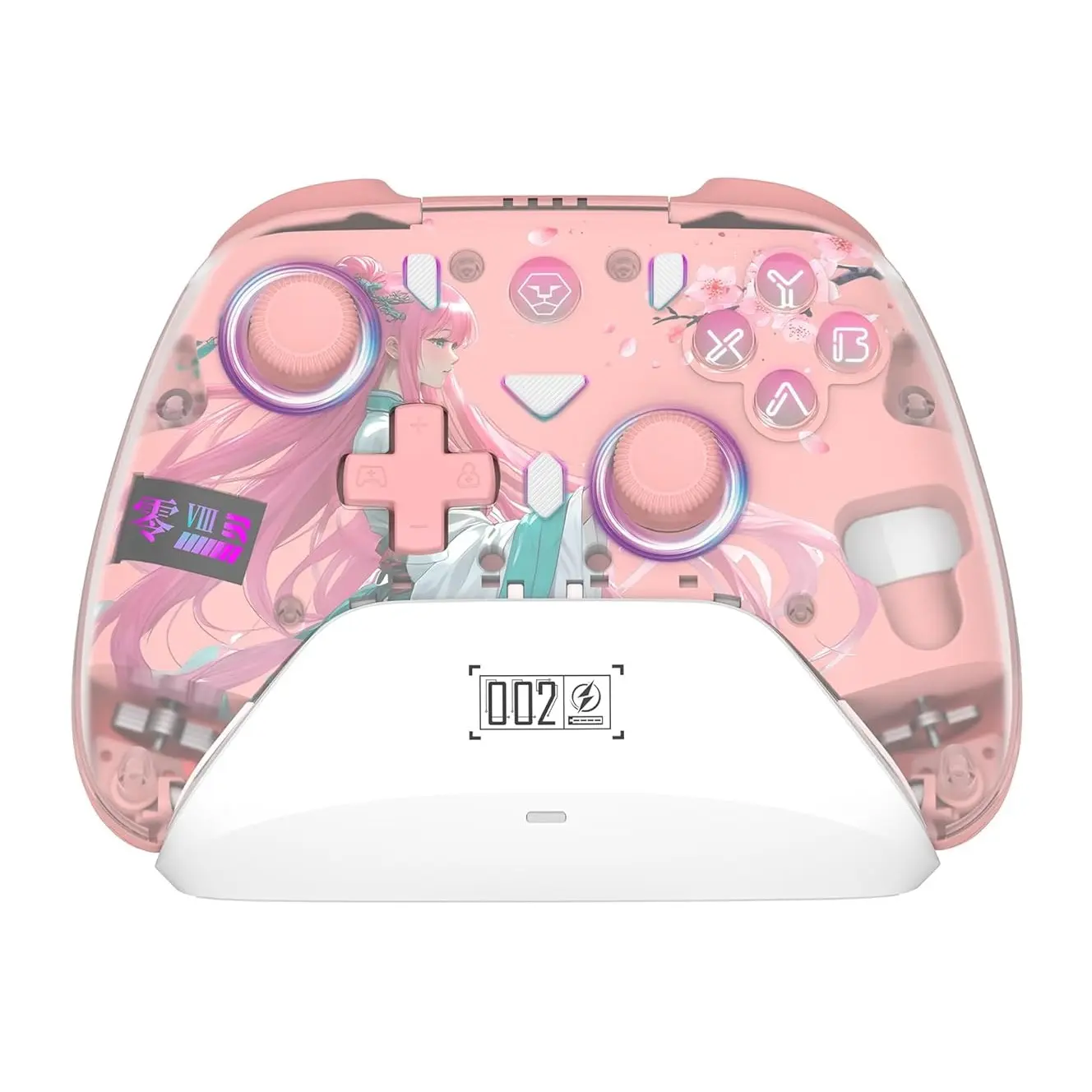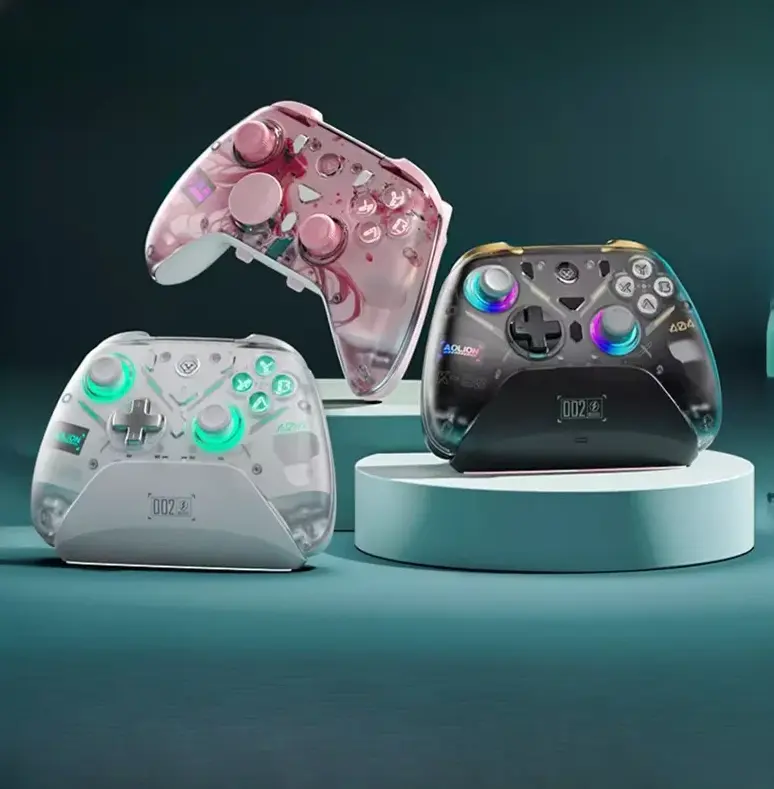 ·Complete Personalization: the wireless PC controller has 4 expandable buttons, 32-step macro programming, replaceable joysticks with adjustable heights, swappable left joystick and D-pad, customizable RGB lighting with base ambient lighting, removable panels, interchangeable D-pad styles (cross-shaped/disc-shaped), and ABXY button remapping.