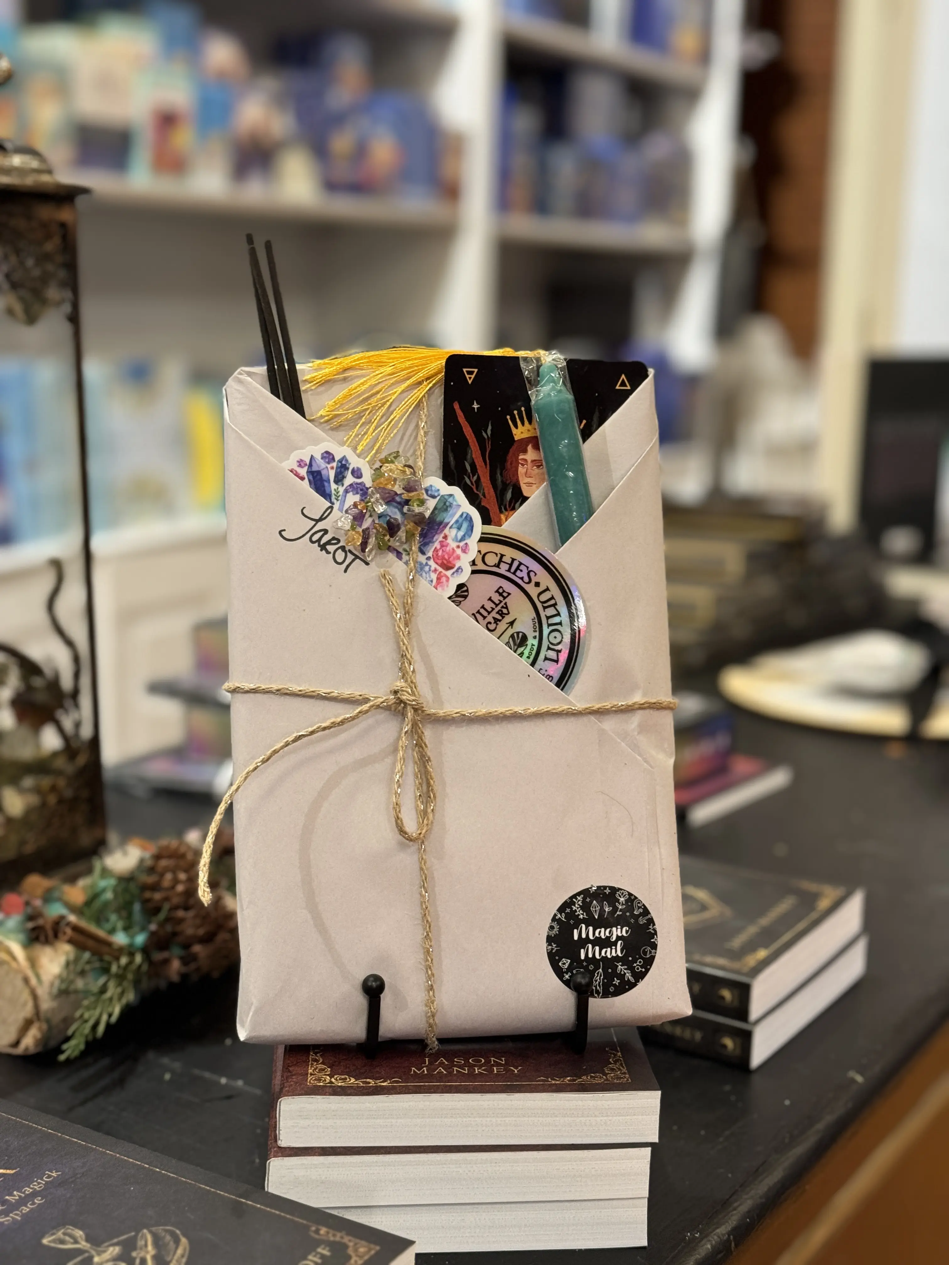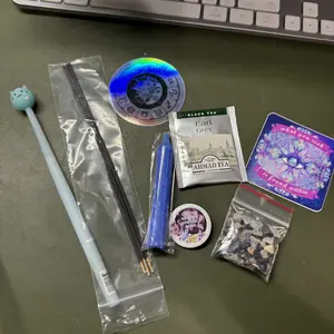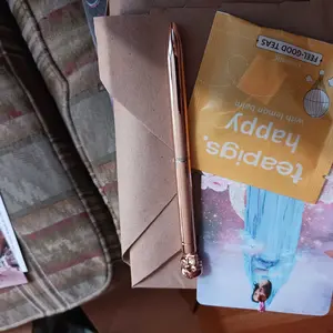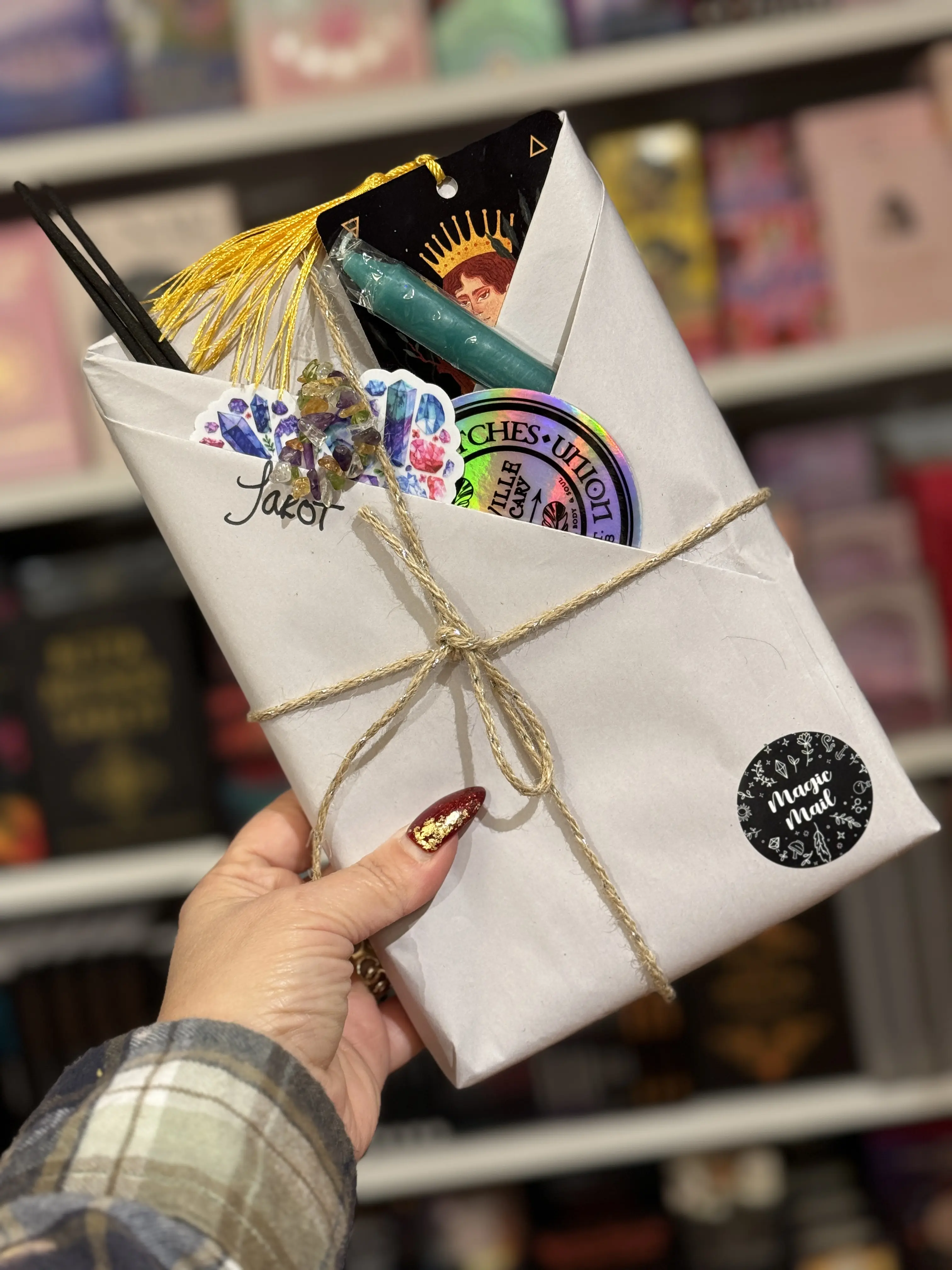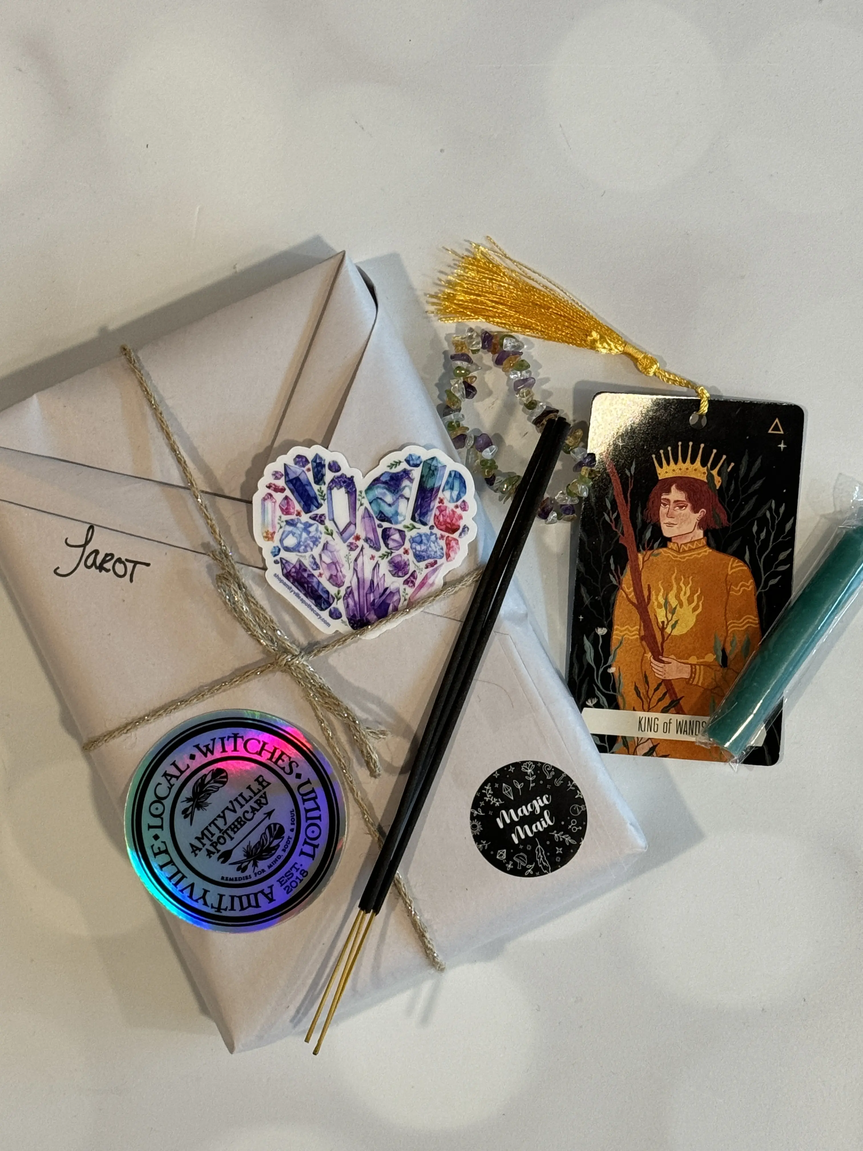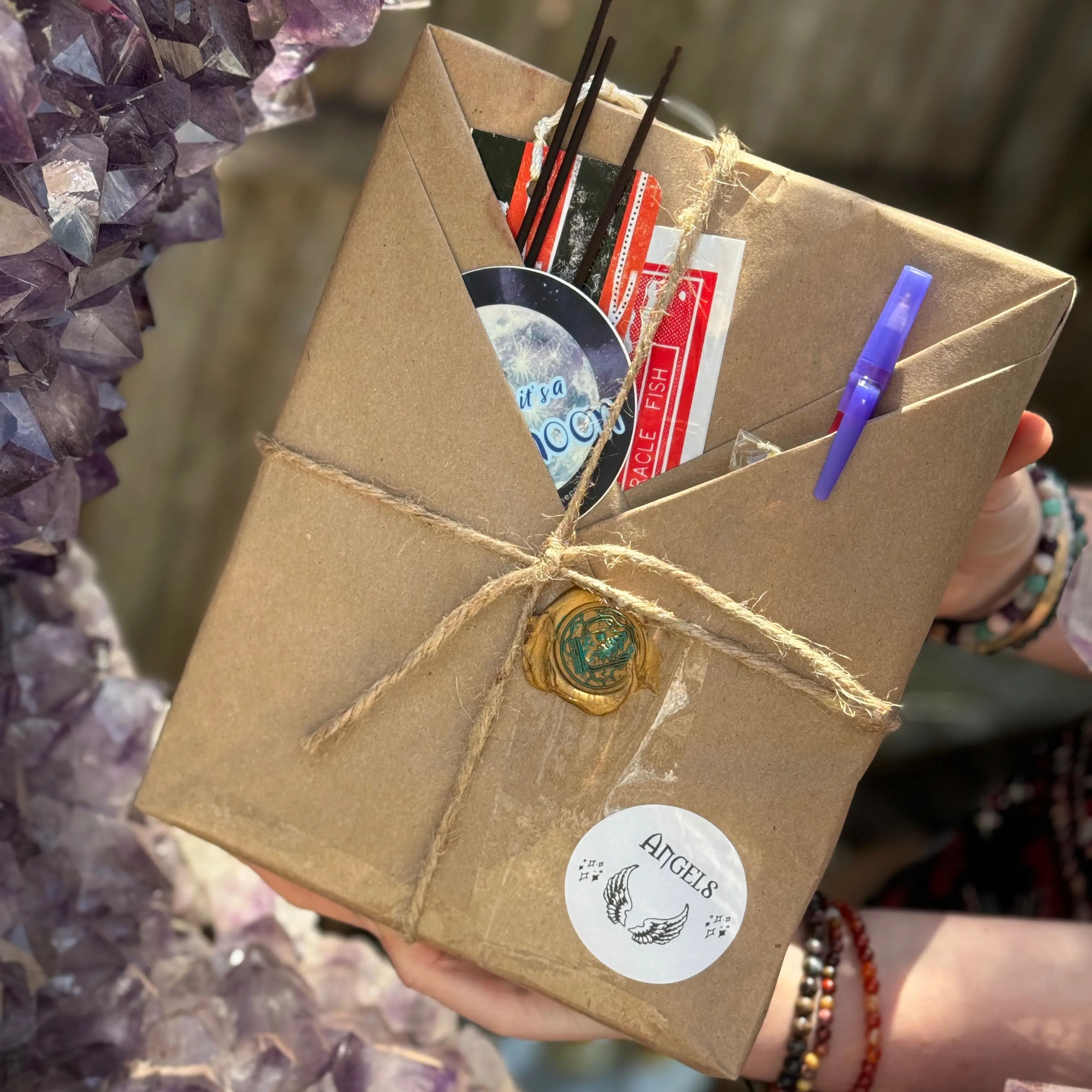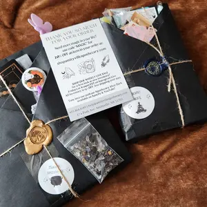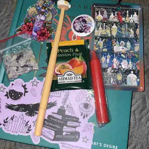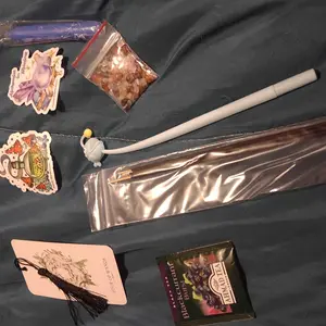 Absolutely beautiful shop came exactly how expected but 20 million times better it’s crazy because I wanted a green book and that’s exactly what I got a bunch of cute stuff as well. I love the scent of my incense. Candle stickers, a pen, some small amethyst and small crystals aswelt!