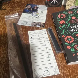 My second time ordering. First time was a blind date with an Oracle deck, now a blind date with a witchy book. Absolutely perfect, as always. Whoever packed it, it's like they picked it just for me. And the anglerfish pen! Amazing. 15/10 will absolutely order again.