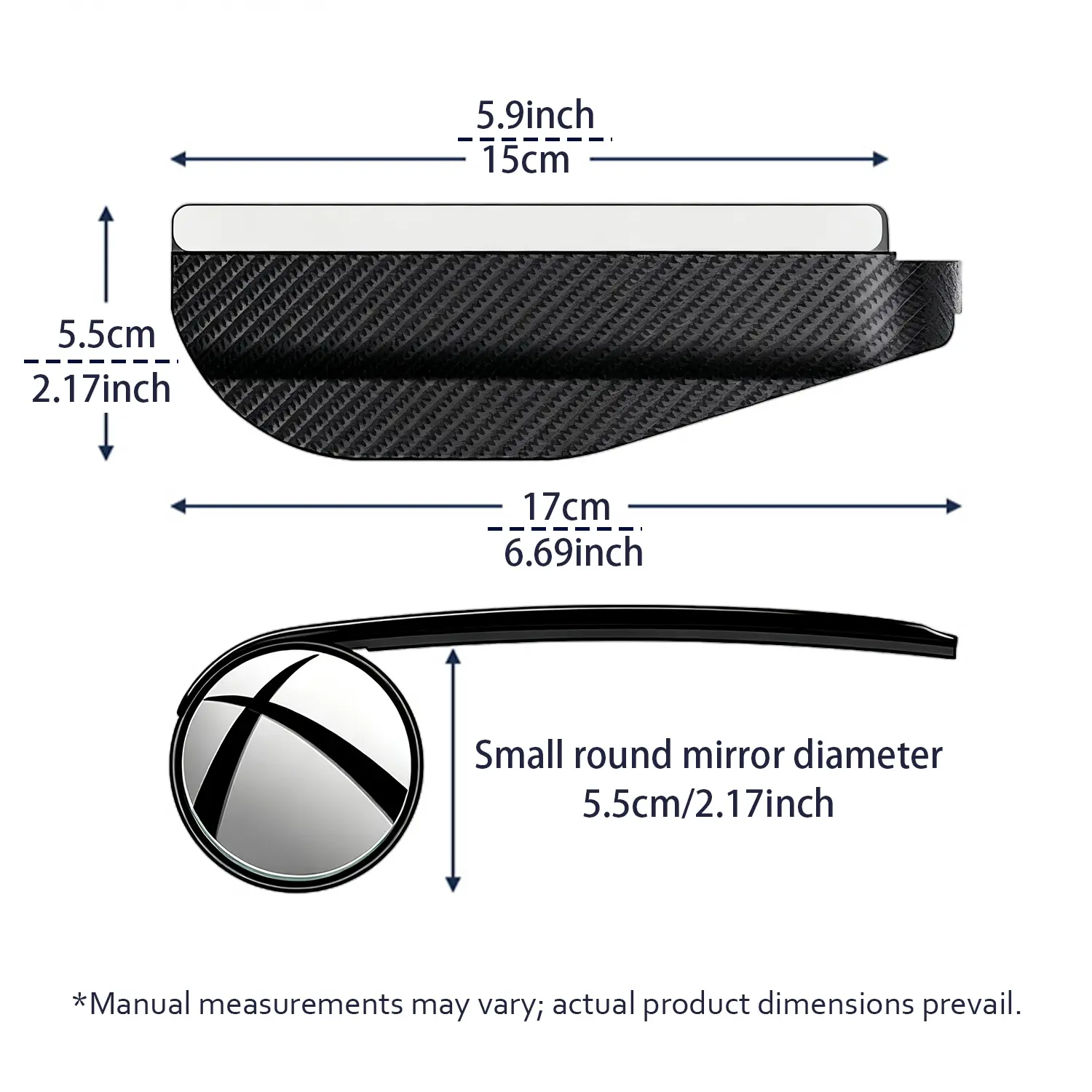 Box Contents: You will receive 2 x 2-in-1 rear view blind spot mirror rain eyebrow. The rain eyebrow measures 6.69" x 2.16", the small round mirror is 2.16" in diameter, and the adhesive length is 5.9". Slim design does not affect the folding of side view mirrors. Suitable for most car rearview mirror accessories, two-in-one design, one step, no need to buy separately, saving time and money.