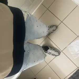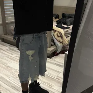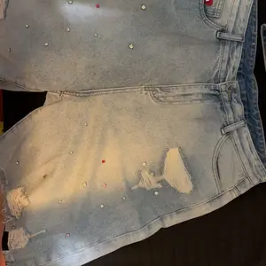 dd a touch of playfulness to your wardrobe with our Aelfric Eden Rhinestone Application Jorts. These simple denim shorts feature a unique distressed hem and adorable rhinestone detailing, giving a classic look a fun twist.