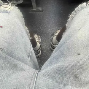 ¡Design: Wide leg, multi-pockets, button, zipper, distressed hem, rhinestone