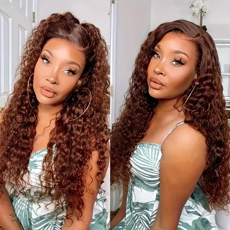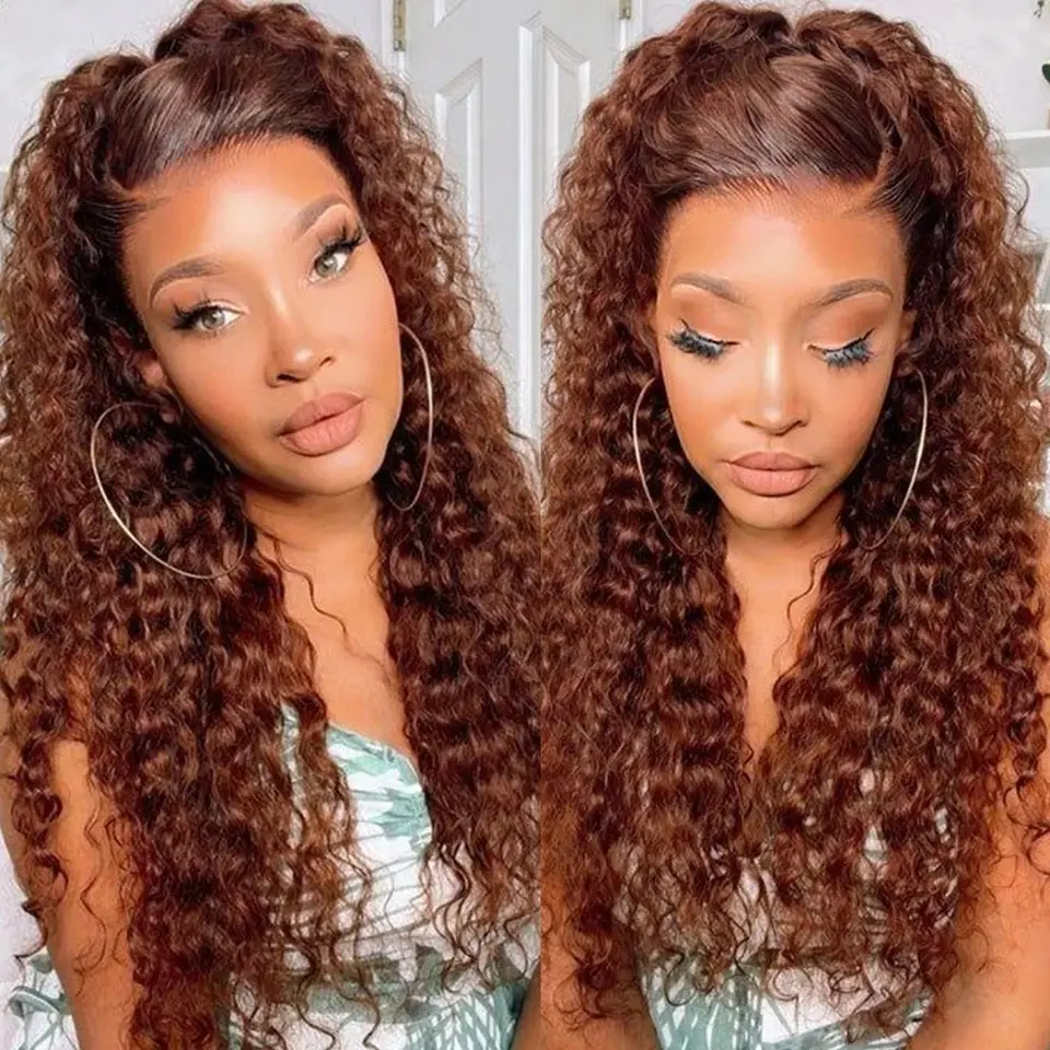 [NEW IN] Bling Hair 13x4 13x6 Chocolate Brown HD Lace Front Wig Deep Wave Frontal Wig Preplucked Colored Brown Curly Human Hair Wigs for Black Women