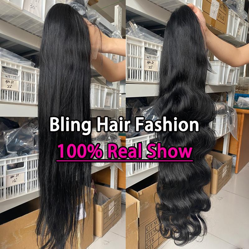 Bling Hair 32inch 13x6 Bone Straight Lace Front Wigs For Human Hair Wigs 180% Density Natural Black Color