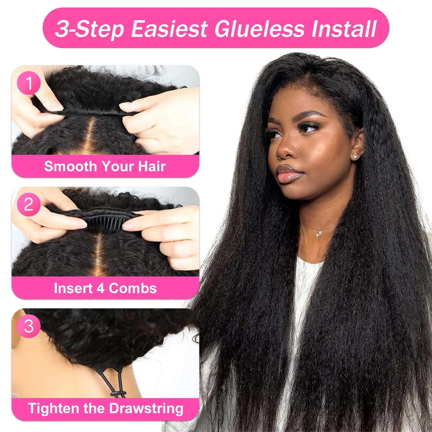 ·Half Wig Features: This Bling Hair 3 In 1 Half Wig is made of human hair. It comes with a drawstring for easy adjustment. The wig is kinky straight and ready to go. 🌟