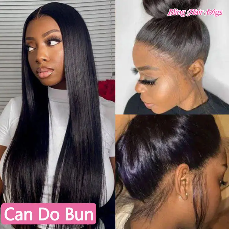 5. Bling Hair 30 Inch 360 HD Full Lace Front Wig Straight Human Hair Body Wave Transparent Lace Front Wigs Brazilian 180 Density Pre Plucked Drawstring Hidden Strap For Women