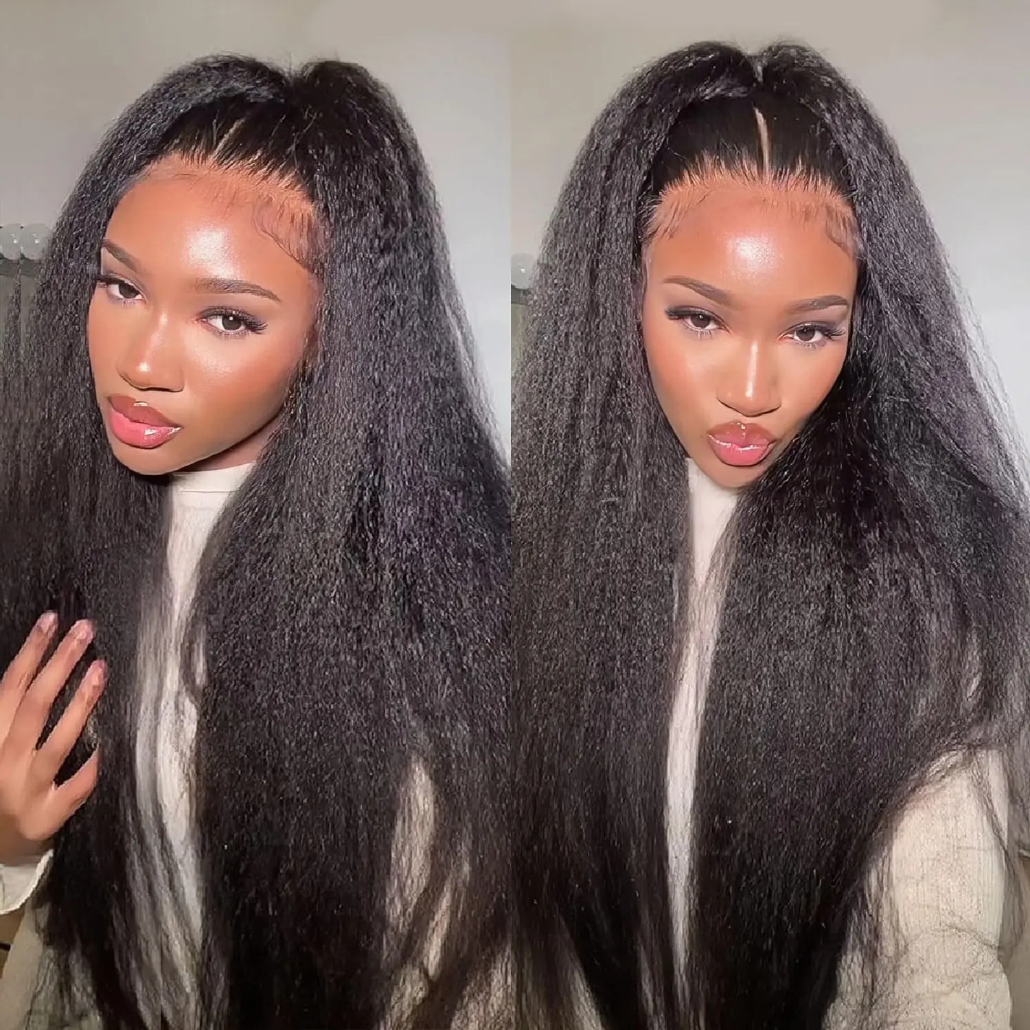 [NEW IN] 13x6 Kinky Straight Lace Front Wigs Real Human Hair Pre Plucked With Baby Hair 180% Density Yaki Straight Transparent HD Glueless Lace Wig Human Hair Wigs For Black Women