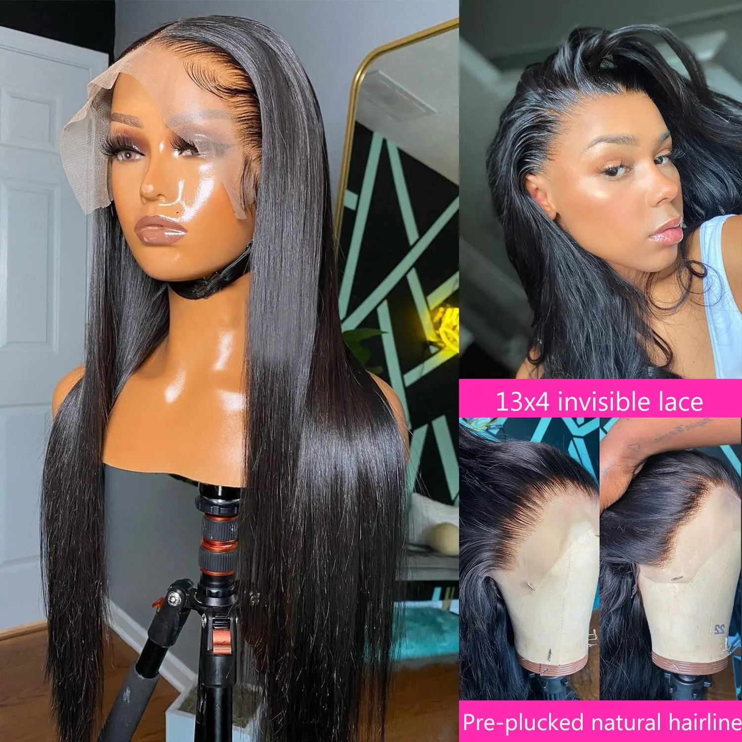 Bling Hair Straight Wig 13x4 13x6 Hd Lace Front Wigs Real Human Hair for Women Pre Plucked Natural Hairline Transparent Lace Frontal Wig 12-36 Inch 180% Density