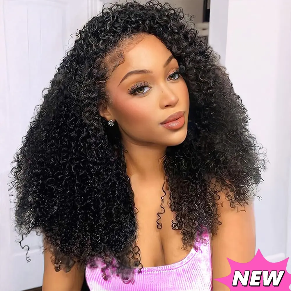 👍【Kinky Curly Half Wigs Human Hair Advantage】None Lace Front Wigs, Minimal Leave Out, Perfect for Short Hair Blending, Protect your edges. No Glue, No Sew In, Wear and Go Glueless Wigs Human Hair, Easy Take Off. Minimum Styling Experience, Beginner Friendly Styling.