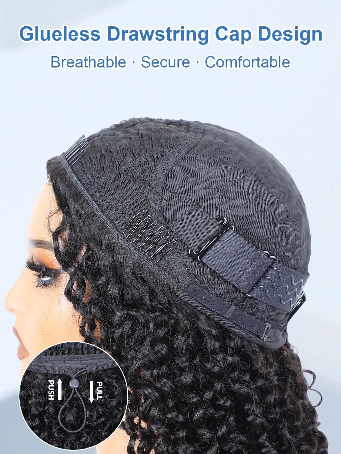 ·Adjustable Fit – Elastic Drawstring, Elastic Band & Secure Combs:Featuring a built-in elastic drawstring , elastic band and inner combs, this wig offers a snug, customizable fit. Whether worn as a half wig or flipped over, it stays in place without slipping — perfect for active, everyday styles.