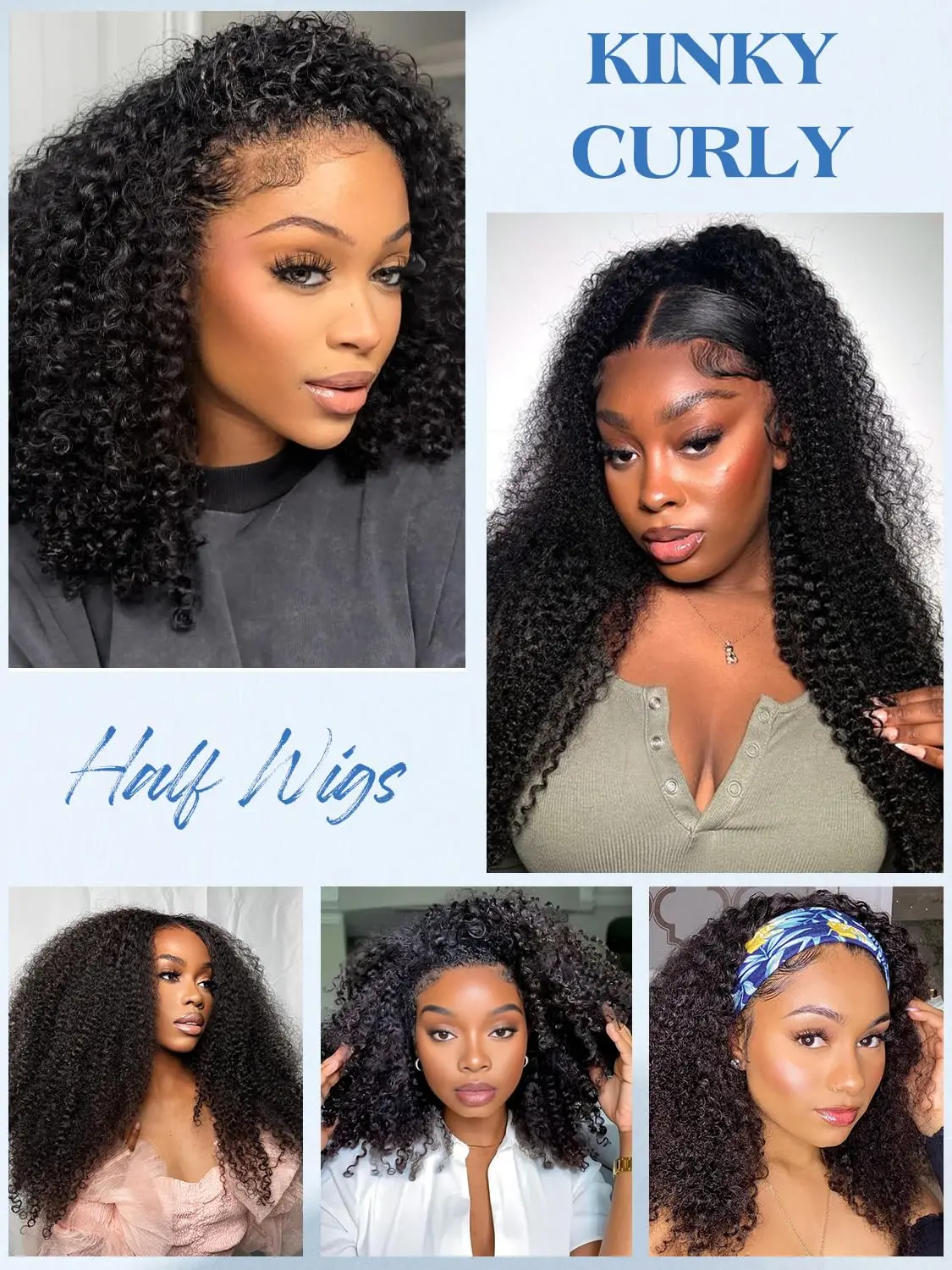 ·3-in-1 Versatile Style – Flip Over, Headband, or Half Wig:This Kinky Curly Half Wig is designed with flexibility in mind. Wear it as a seamless flip-over wig, a secure drawstring half wig, or a beginner-friendly headband wig — all in one! Perfect for switching up your style without extra tools or glue.