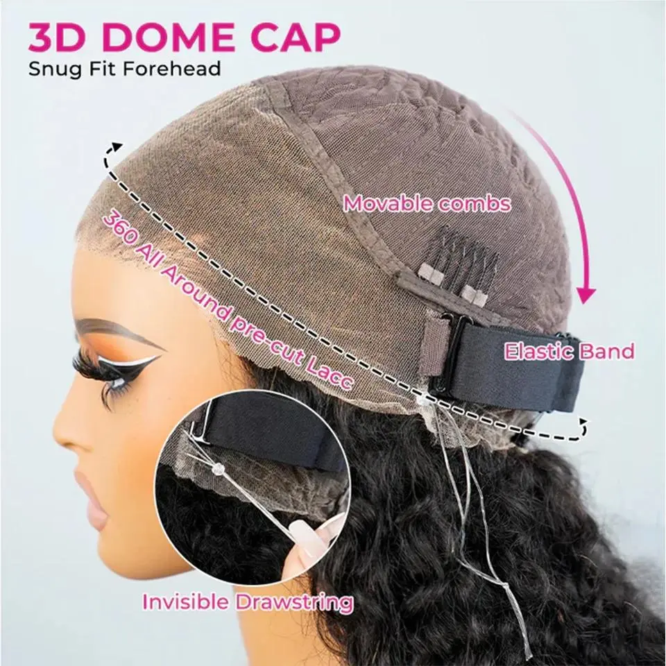 Bling Hair 360 Glueless Wigs Kinky Straight 360 Full Skin Lace Frontal Wig Invisible Strap Pre Plucked Pre Cut Natural Hairline Human Hair Wig