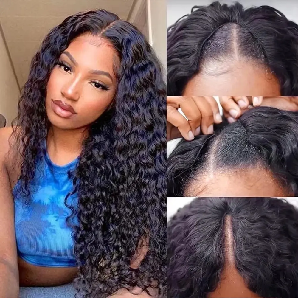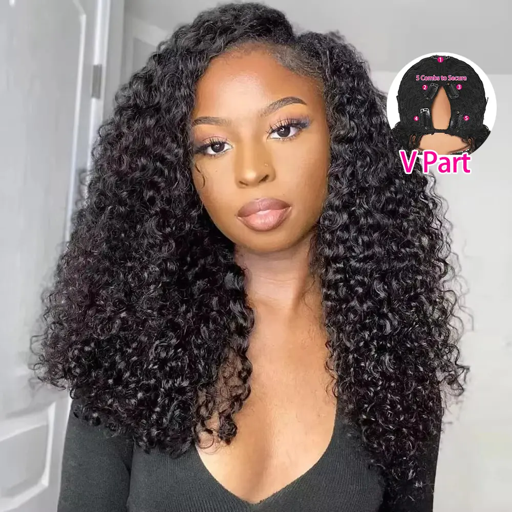 Bling Hair Deep Wave With Drawstring V Part Wigs Beginner Friendly No Leave Out Real Scalp Ready to Wear Glueless Wig 100% Human Hair 180% Density Curly Wigs For Women