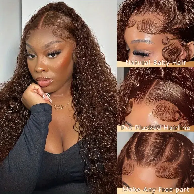 [New In] Bling Hair 13x6 13x4 Chocolate Brown HD Lace Front Wig Human Hair Wigs for Black Women 180% Denisty Deep Wave Lace Frontal Wigs Curly 4# Pre Plucked with Baby Hair Colored Wig TikTokShopHolidayHaul