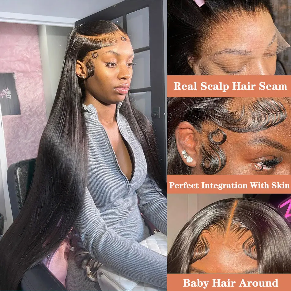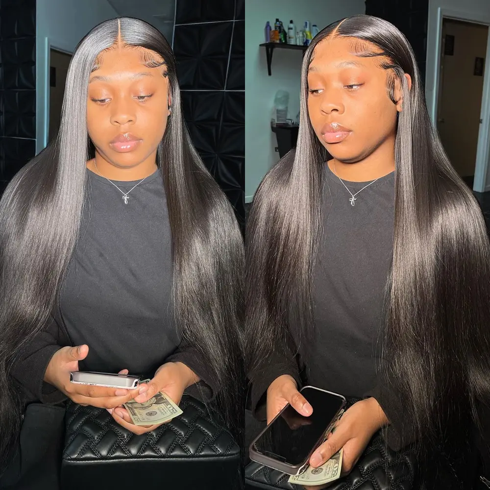 5. Bling Hair Bone Straight 13X6 HD Transparent13x4 Lace Front Wigs For Women Natural Black Human Hair Lace Frontal Wig Pre Plucked Hairline 180 Density