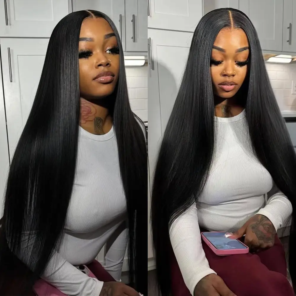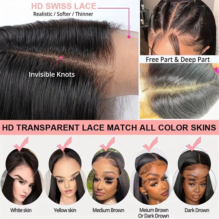 Bling Hair Bone Straight 13X6 HD Transparent13x4 Lace Front Wigs For Women Natural Black Human Hair Lace Frontal Wig Pre Plucked Hairline 180 Density