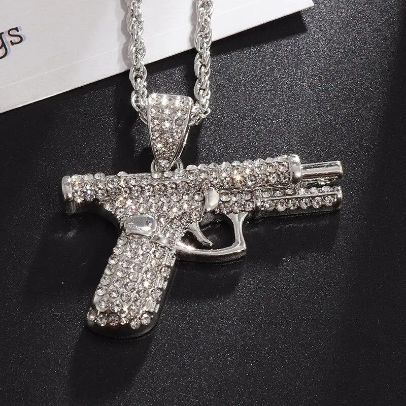 Bling Iced-Out Pistol Pendant Necklace for Men