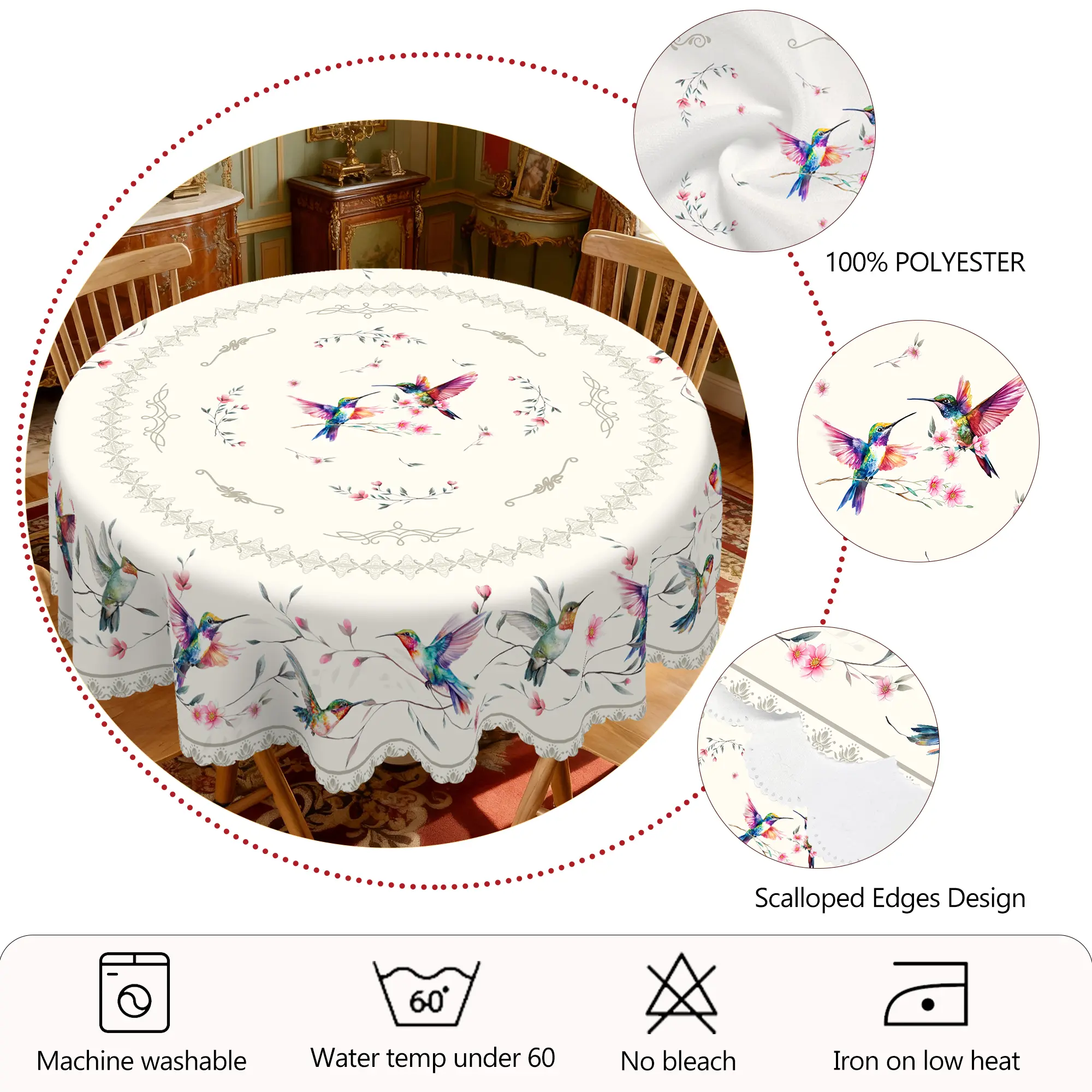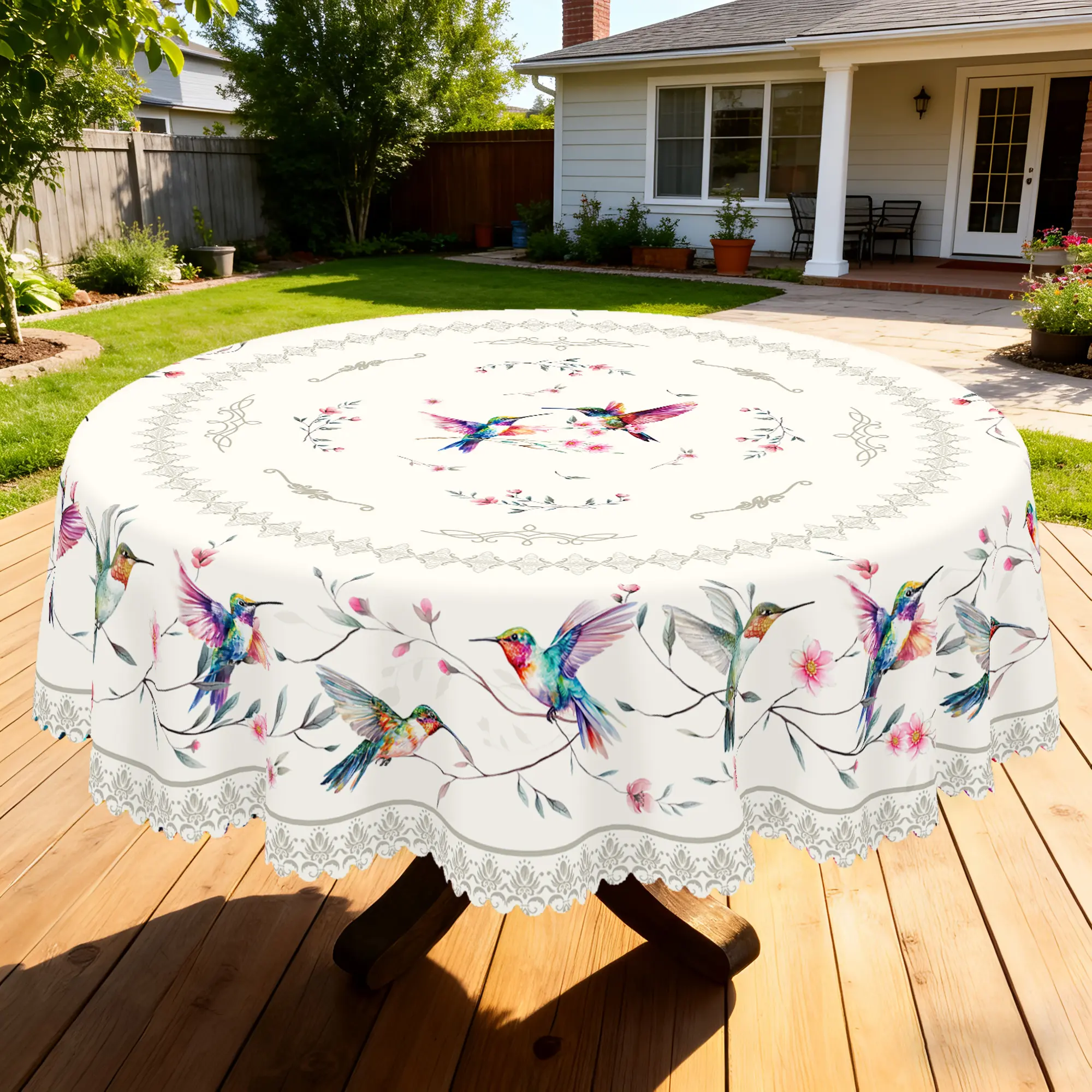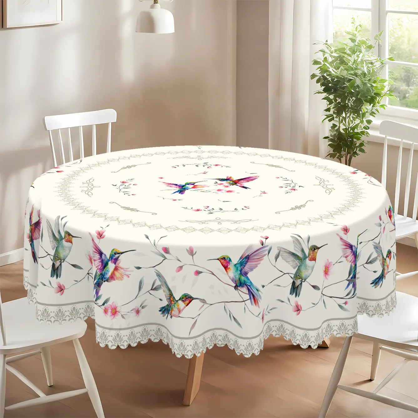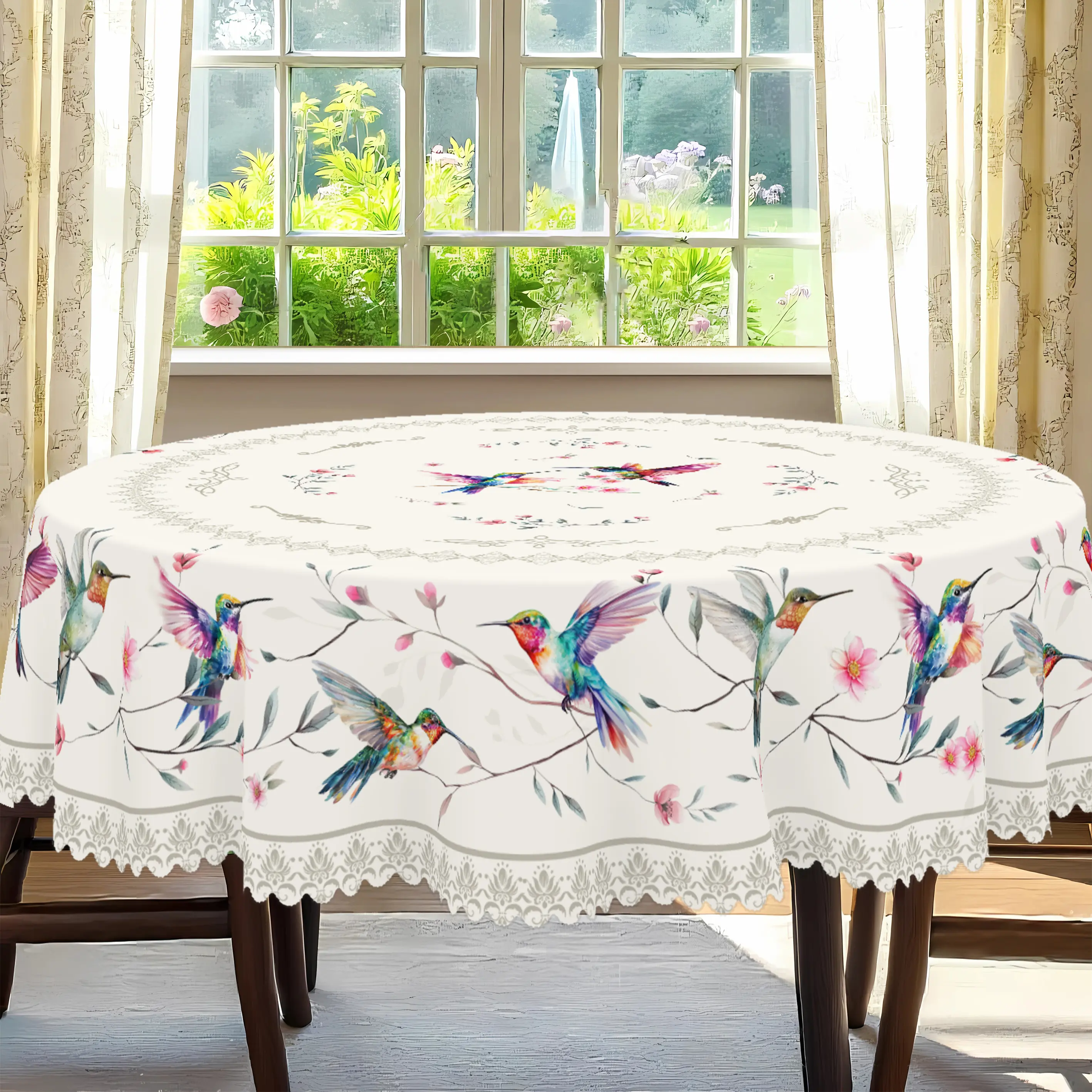 The BLIOWL Colored Polyester Tablecloth features a woven design with charming hummingbird and floral patterns. Made from 100% polyester fiber, this tablecloth is perfect for various occasions. Choose from round or square options to suit your needs. Ideal for holiday decorations, kitchen gatherings, picnics, dinners, and modern home decoration.
